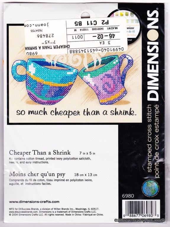 Cheaper Than a Shrink' Kit #6980 contains thread, printed cloth, needle & instructions 7" x 5"