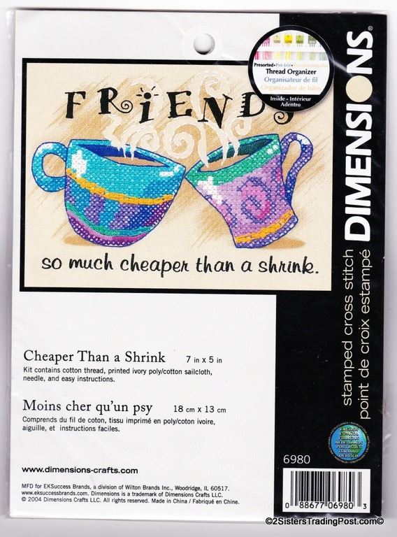 Cheaper Than a Shrink' Kit #6980 contains thread, printed cloth, needle & instructions 7" x 5"