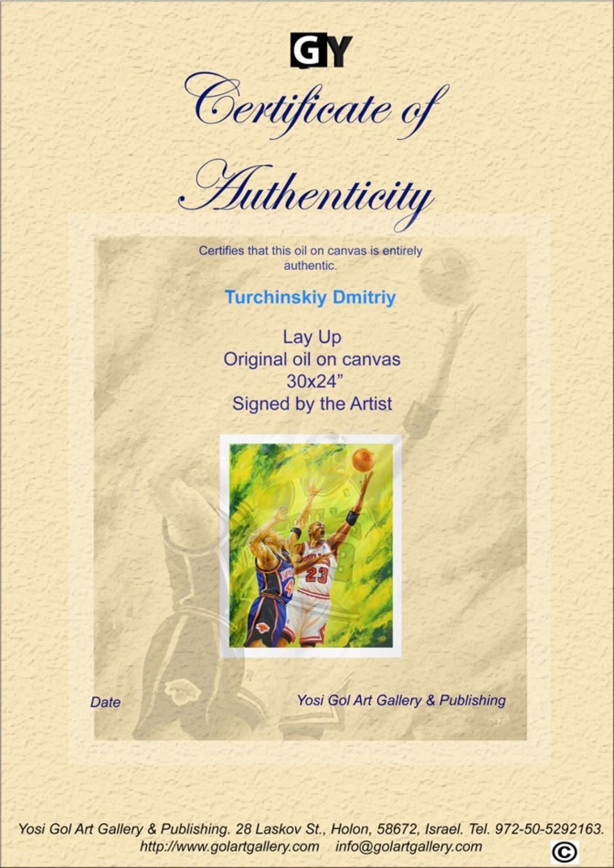 Artist: Dimitry Turchinsky. Medium: Original Oil on Canvas. Title: Lay Up. Size (Unframed): 30" x 24". Certificate of Authenticity: From the publisher. Reference# 10292.