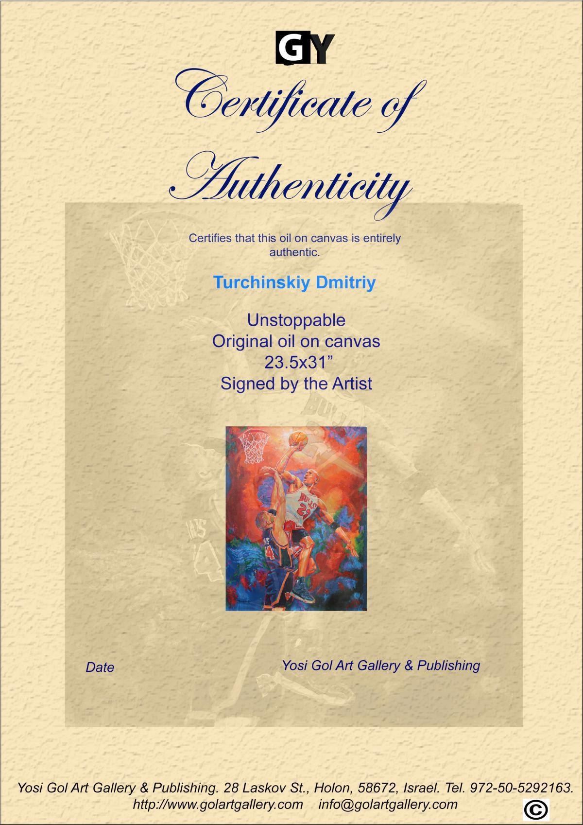 Artist: Dimitry Turchinsky. Medium: Original Oil on Canvas. Title: Unstoppable. Size (Unframed): 31" x 23.5". Certificate of Authenticity: From the publisher. Reference# 10199.