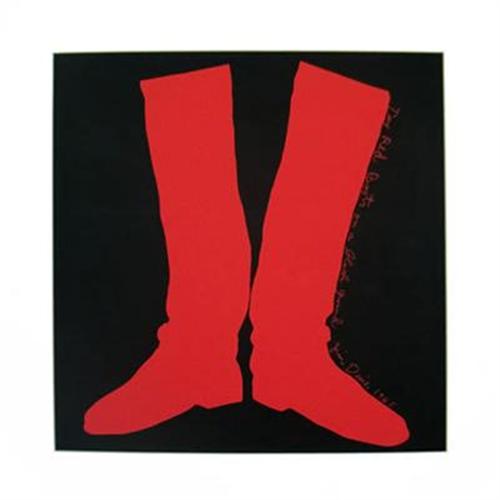 Notes:From Multiples, hand pulled silk screen published in 1968. Published by Multiples, printed by Banner Silk screens. Tilte Text Wraps the left boot in red. Edition size about 500. Measures 18 x 15 inches, and in mint condition.