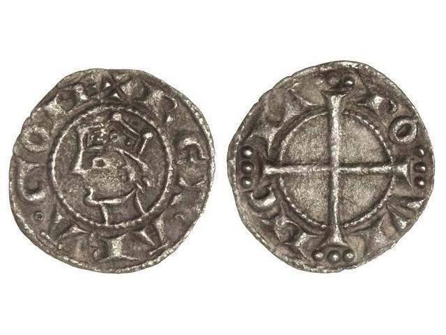 Diner. ALFONS I. COMTAT DE PROVENÇA. Anv.: REX¶ARA¶GONE. Efigie coronada a izquieda. Rev.: PO-VI-NC-IA. Cruz pasante con tres puntos en los extremos. Cru.VS-170. MBC+.