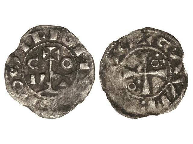 Diner. GAUSFRED III. COMTAT DE ROSSELLÓ. Anv.: ¶ROSILIO(VS). Cruz sobre pie entre C-O y N-T. Rev.: ¶GAVFR(ED)VS. Cruz interior patada con alfa y omega esquemáticos en 2º y 3er espacios. Cru.VS-113.1. MBC.