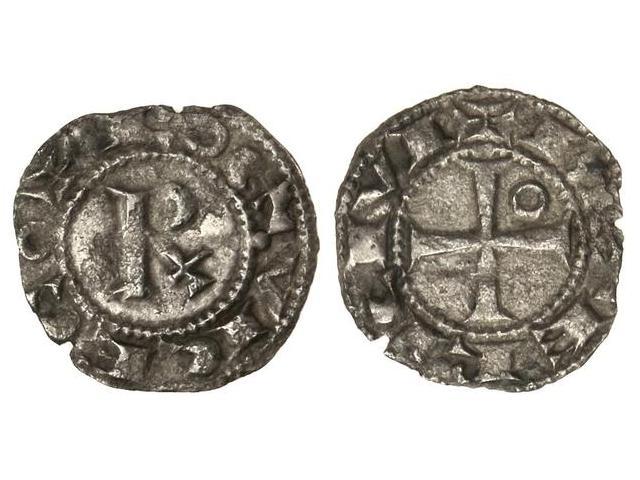 Diner. ROGER II. VESCOMTAT DE BESIERS. Anv.: ROG. VICECO. R cruzada. Rev.: BITERI. CIVI. Cruz interior con roel en 2º espacio. Cru.VS-150.1. MBC+.