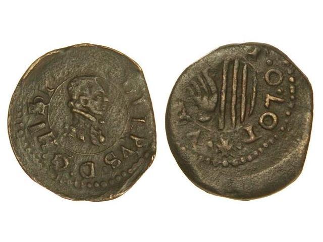 Diner. - S/F. - FELIP IV. - OLOT. - (Reverso descentrado). RARA. Cal-186. (EBC-). - -