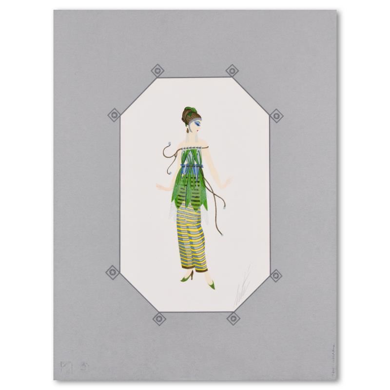 "Dinerzade" is a limited edition serigraph on paper, numbered IV/IX and hand signed by Erte (1892-1990). Includes Letter of Authenticity. Measures approx. 12.5" x 16" (border), 7" x 10" (image).