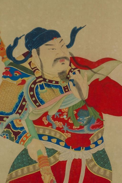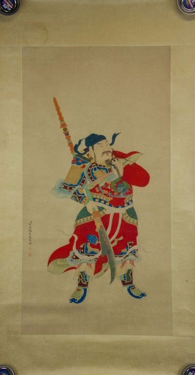 Portrait of Guan Yu (Guan Gong); Chinese ink and watercolour on paper roll; signed Ding Guanpeng (1708-1771); inscribed with 2 artist seals; 122 cm × 60 cm