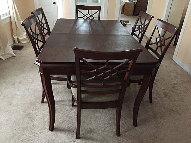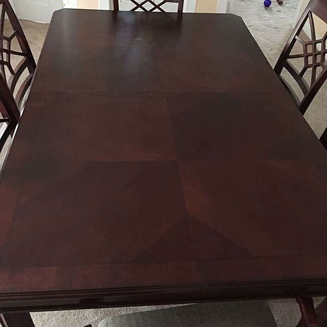 Dining room set with original pads, 6 chairs (one arm chair), very nice condition, parkay top, ready to go right into your home! Table measures approx. 44" x 72" with 2 18" leaves.