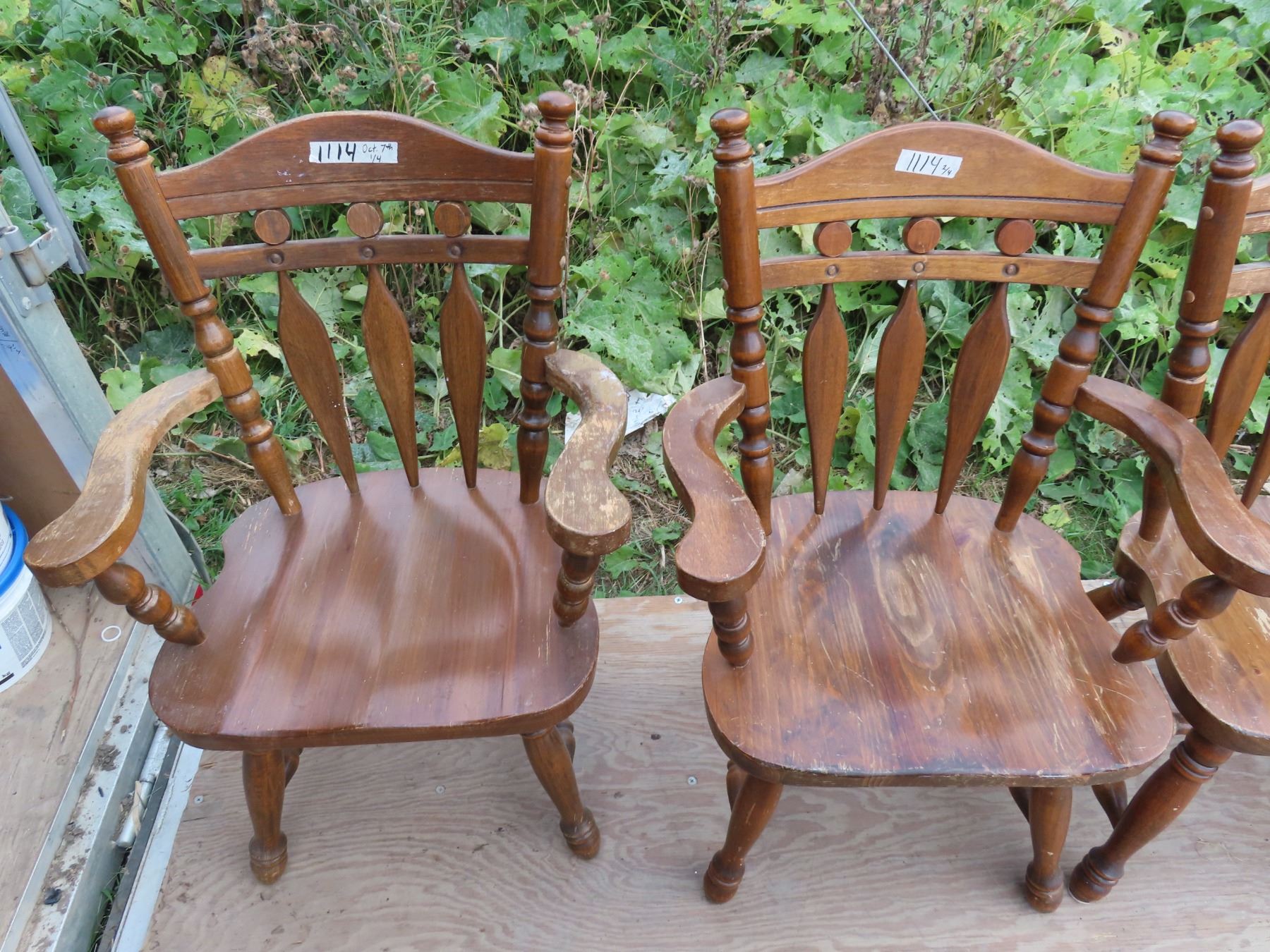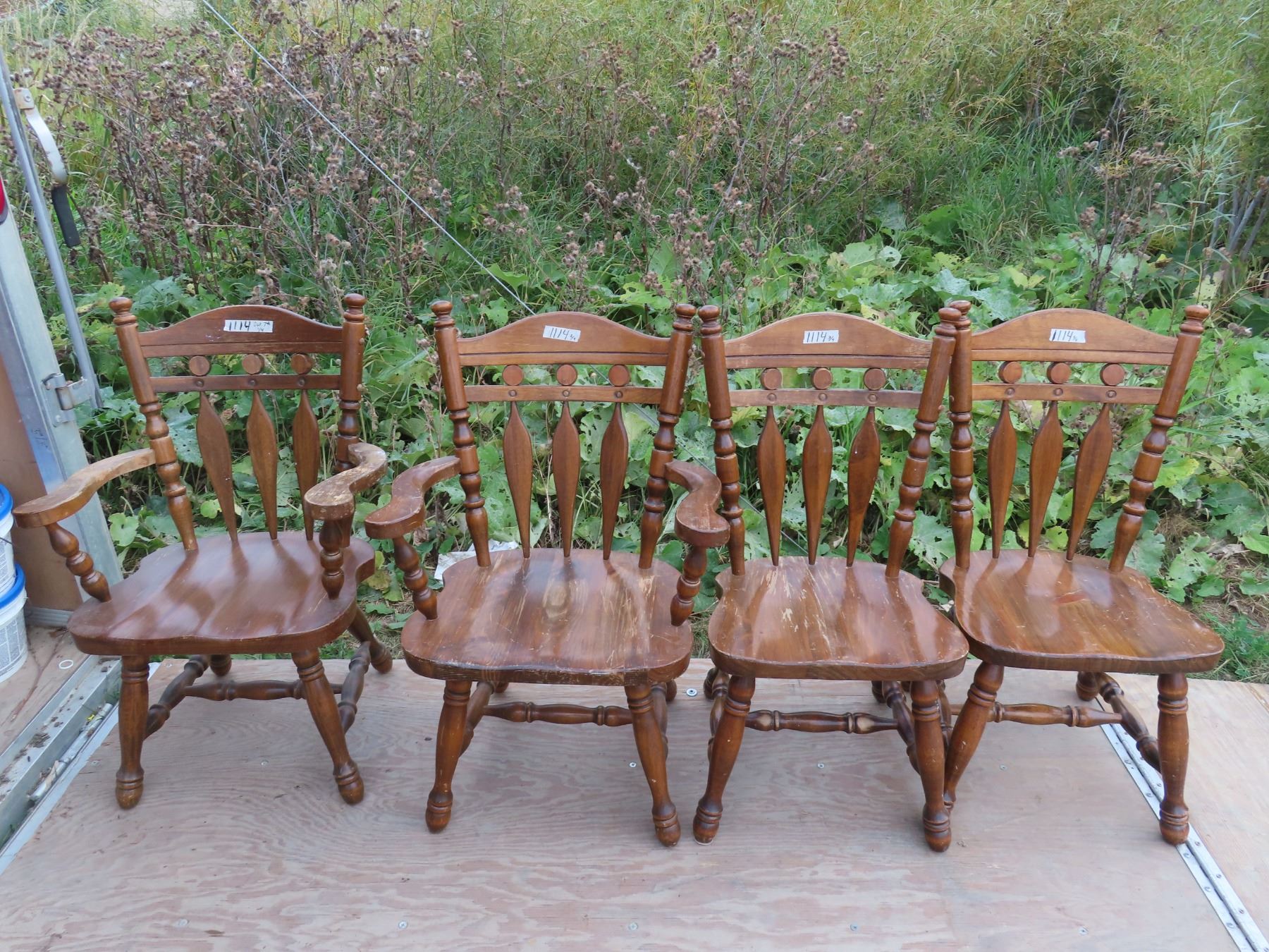 Dining room table set with 4 chairs GREAT condition solid wood end chairs have arm rests