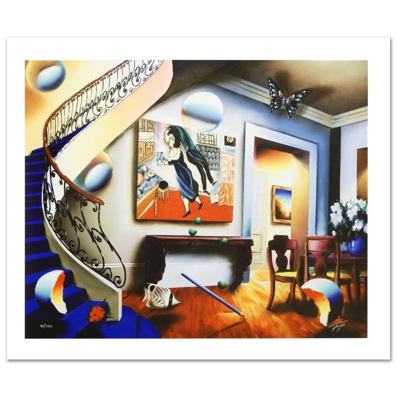 "Dining with Chaggall" is a limited edition giclee on canvas, numbered and hand signed by Ferjo. Includes Certificate of Authenticity! Measures approx. 30" x 24" (image).