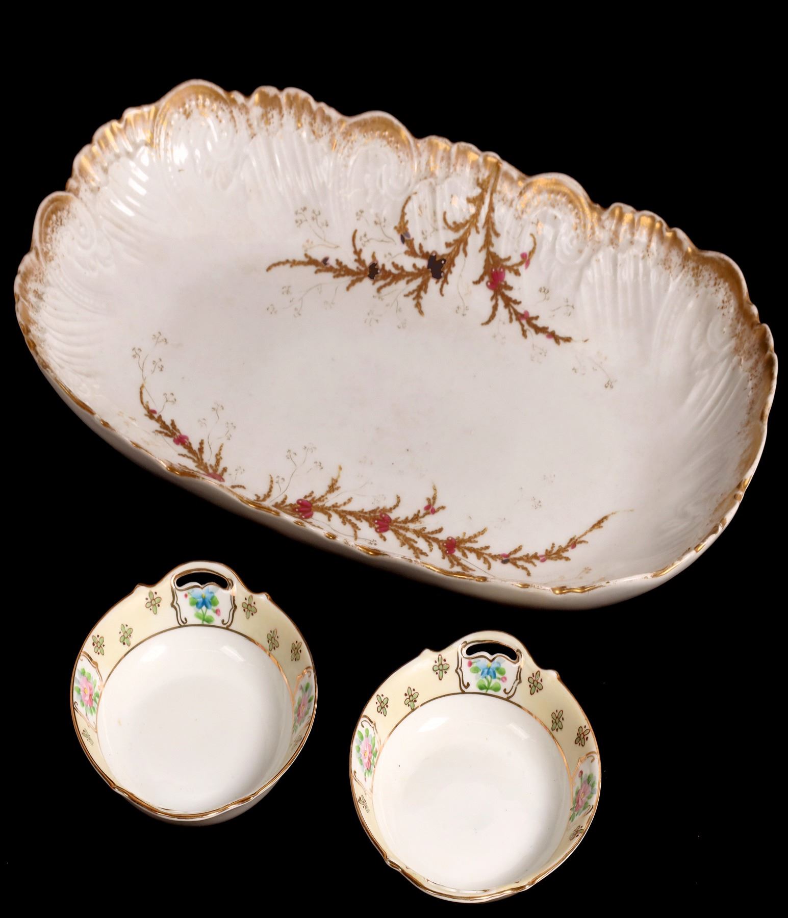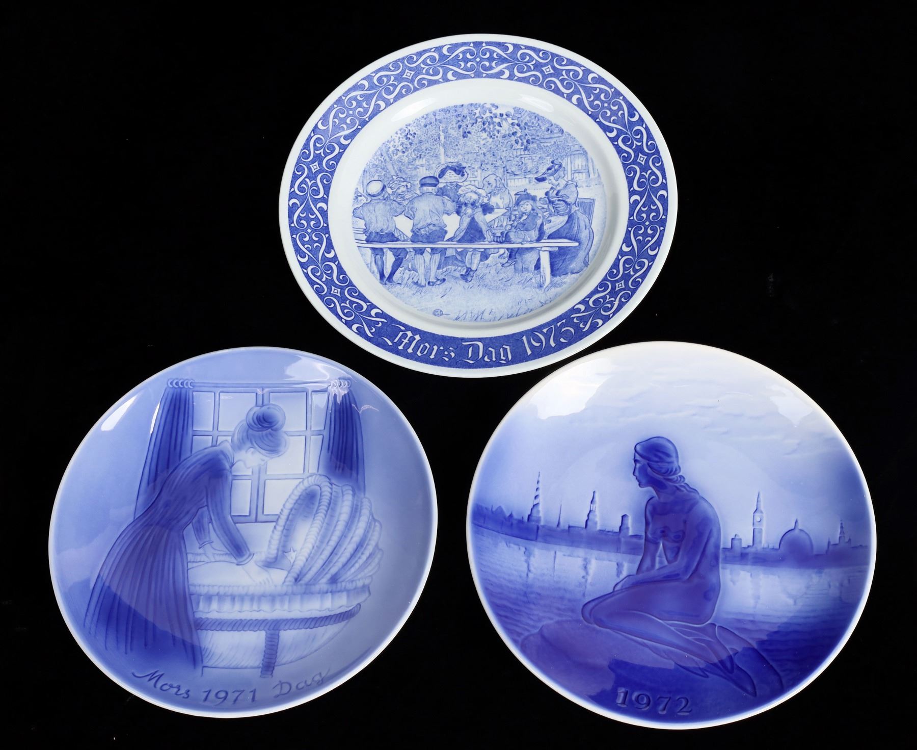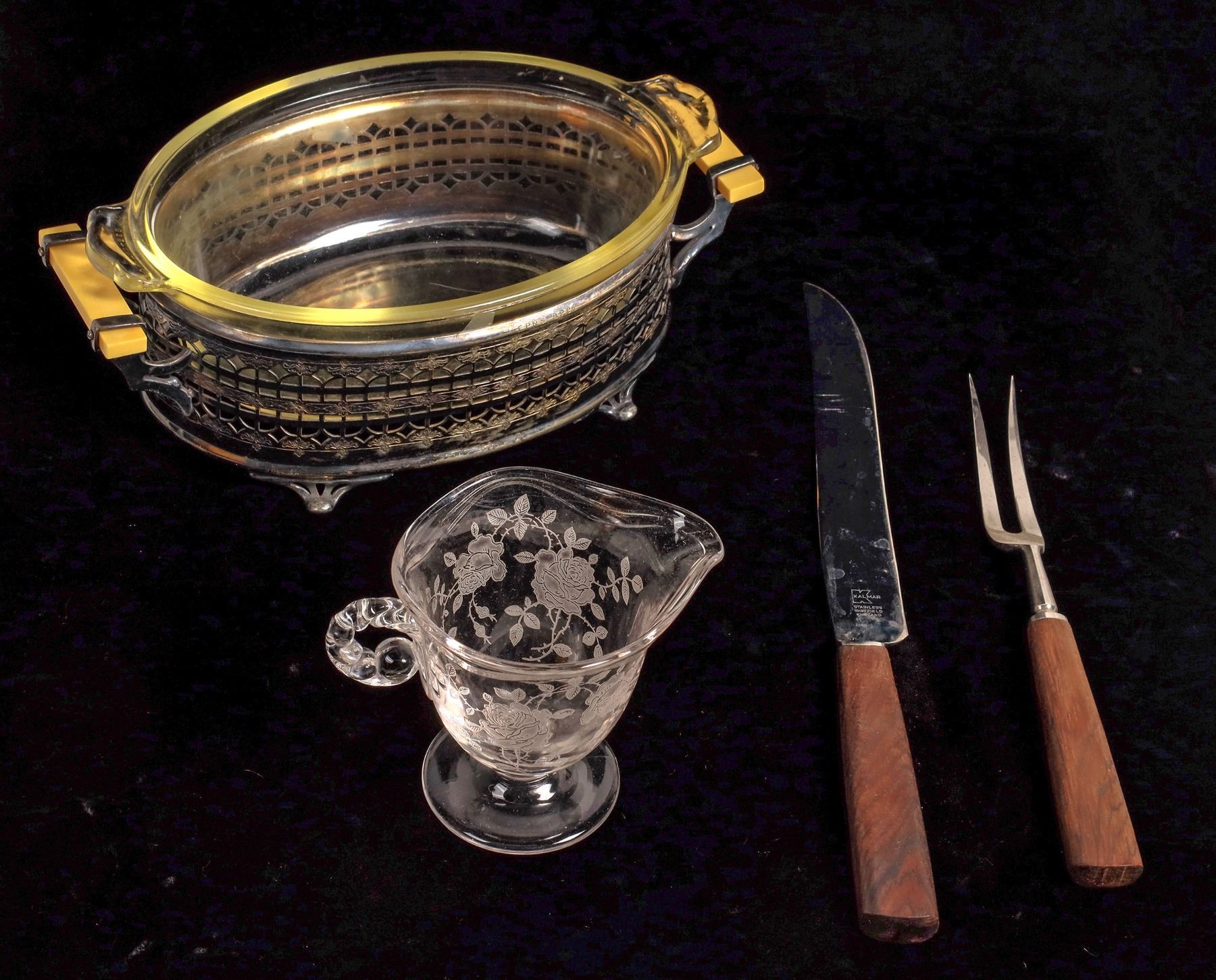 Kalmar carving set, blue mothers day 1971, 1972 and 1973 plates 7.5", oval glass in holder 6x10", Bavarian bowl 10.5", 2 plates 5.25", platter 9.5x16".
