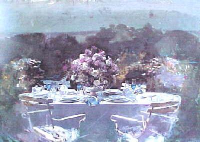 The serenity of Hohne's Dinning Out makes you feel like you are the guest at an exclusive garden party. This print takes you out of this world to the peaceful backyard of an elegant stranger. The perfect piece for any sunroom. Artist: Hohne Date: 2002 Medium: Print Image Dimensions: 24 inches 17 inches Page Dimensions: 30 inches 22 inches Condition: New This work is sold exclusively through Masterworks Fine Art.