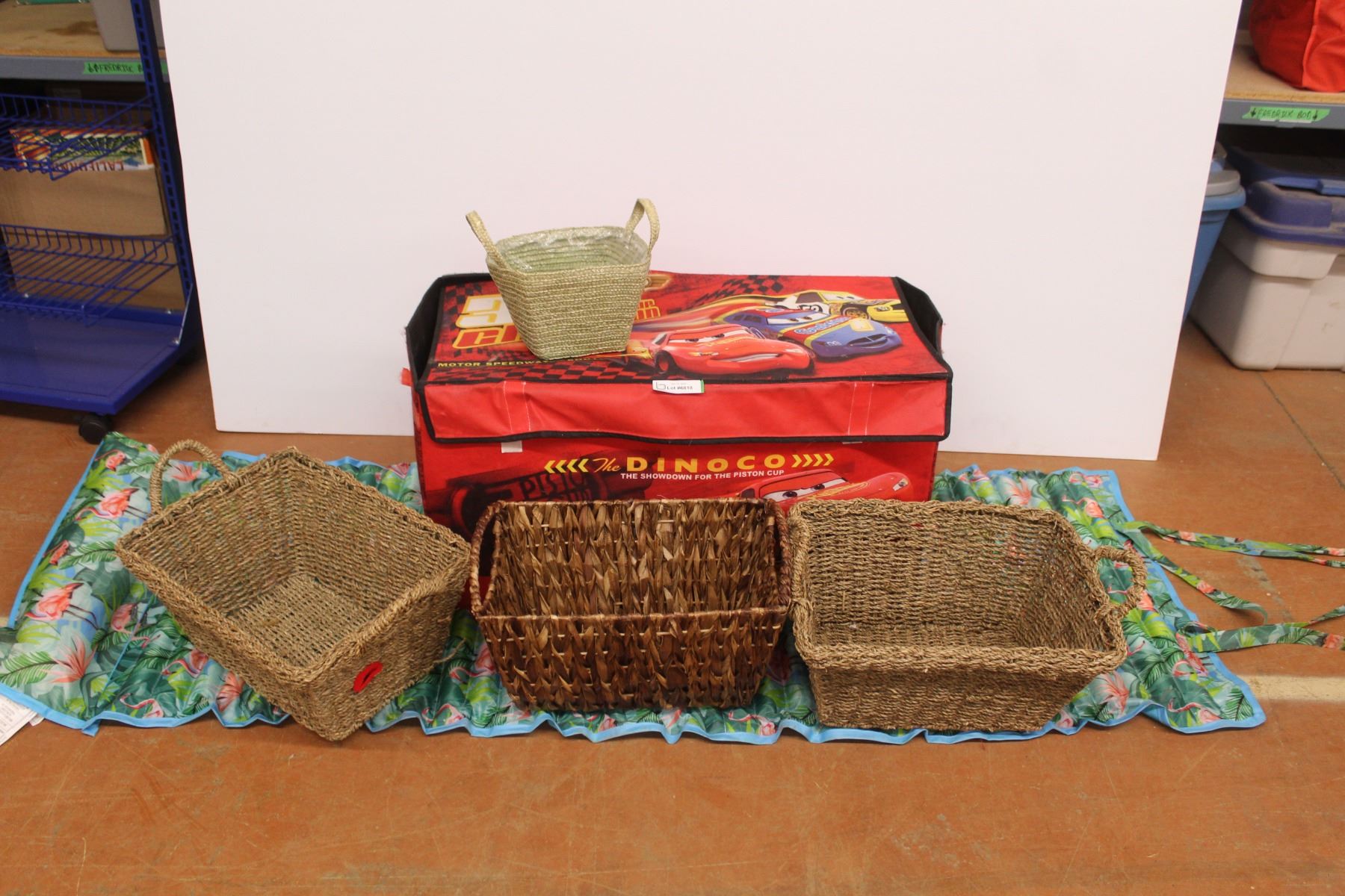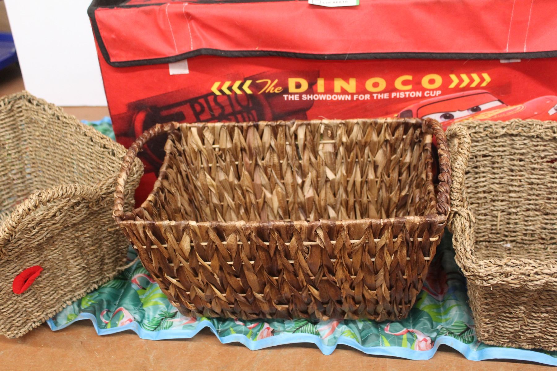 Dinoco Car's Cloth Toy Box - Aqua Mat - Wicker Baskets