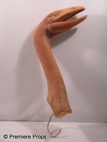 From an unknown 'Dinosaur' related production. This is a large size, rubber mold of a Raptor head. The head is unpainted and made from pliable foam rubber, with a steel bar inserted for support. (measures approx. 35" long). Oversized item. Additional postage required.