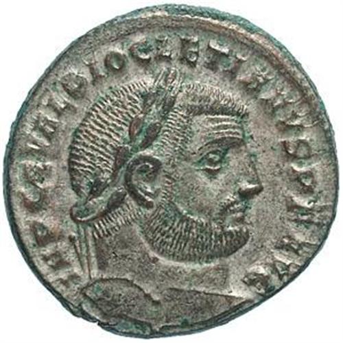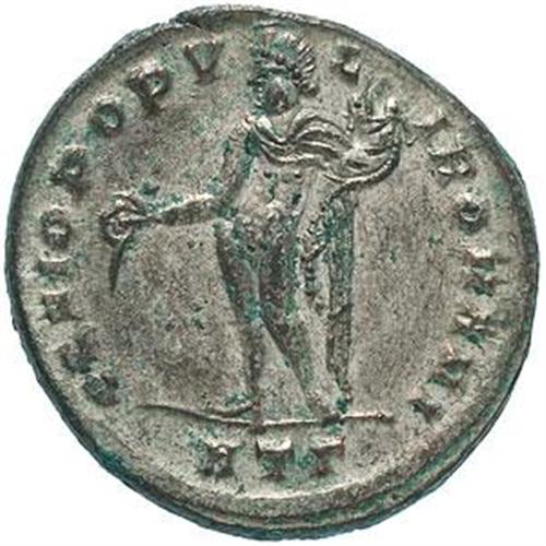 Roman Empire Coins. Diocletian (284-305). Follis, Heraclea. D/ Testa laureata a destra. R/ GENIO POPVLI ROMANI. Genio stante a sinistra, con patera e cornucopia. In esergo: HTG. RIC 12a. gr. 9.68 AE. Piena argentatura. qFDC.
