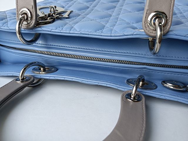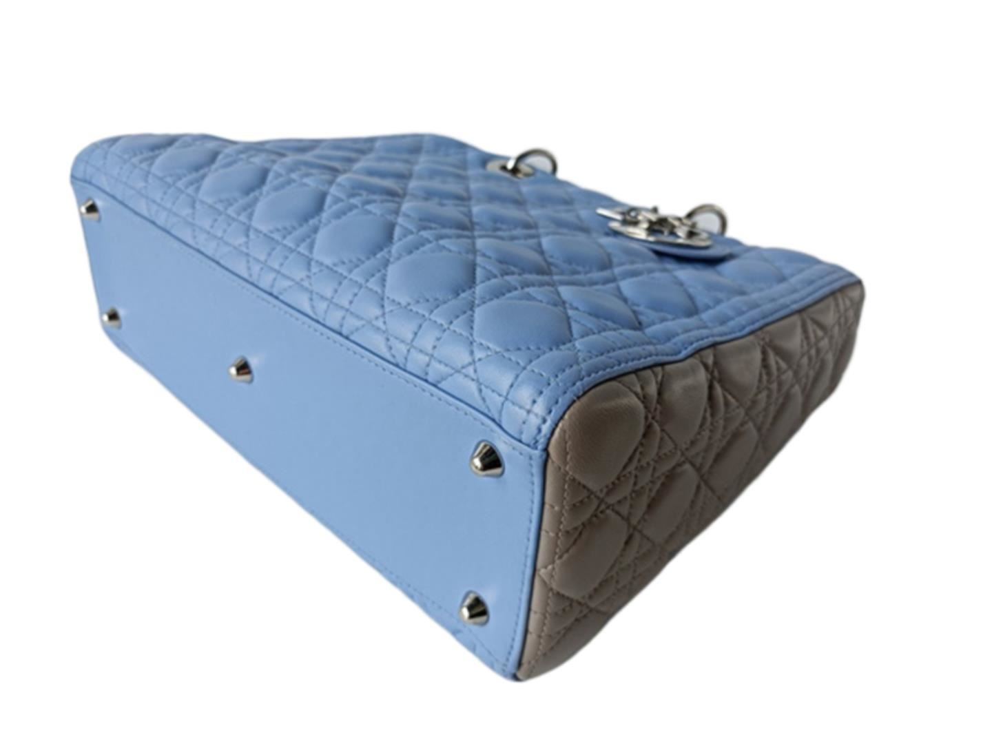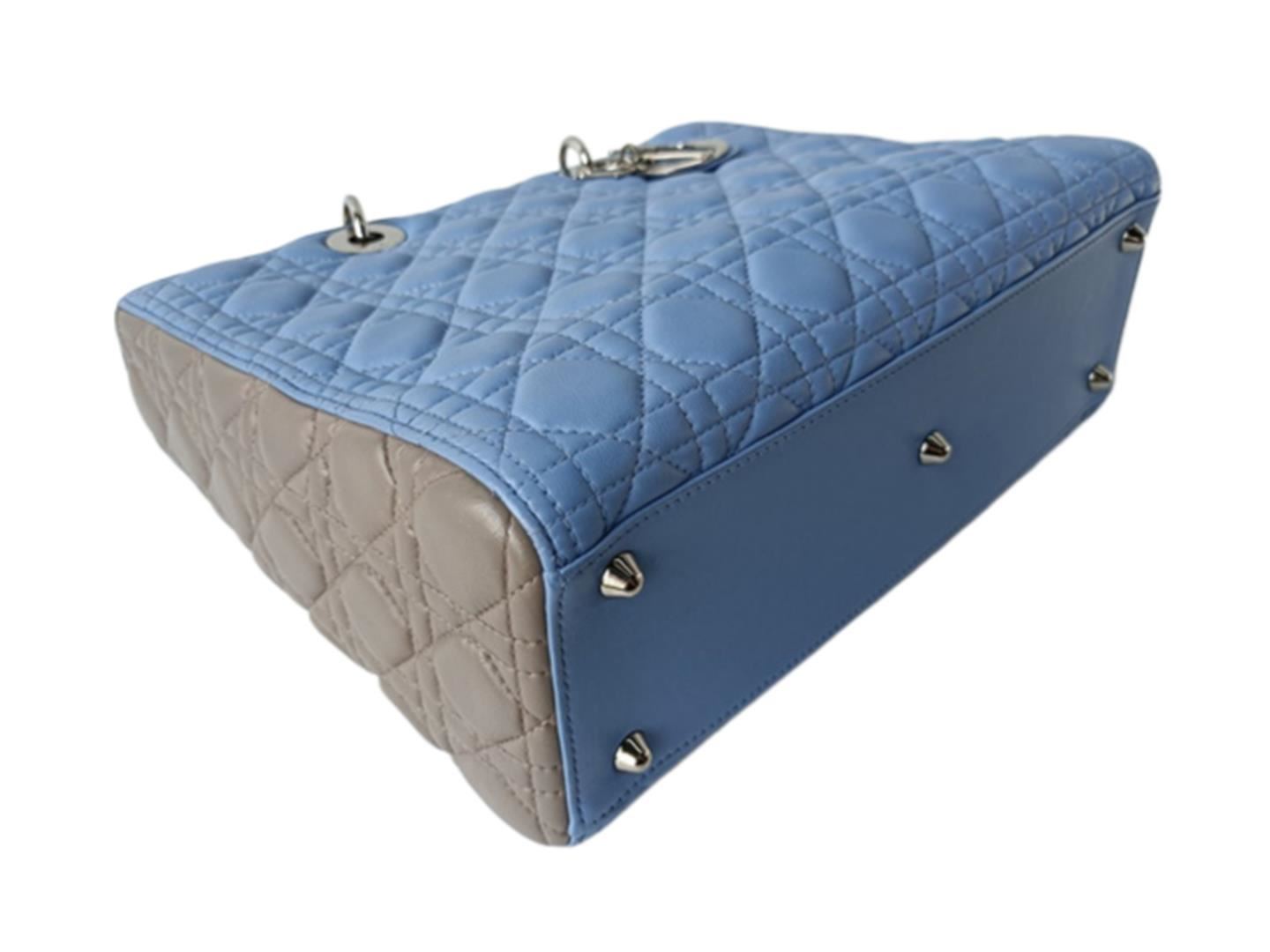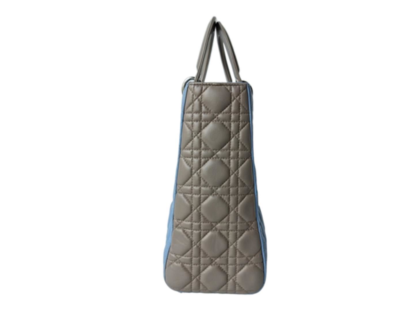 One Dior Large Lady Dior. Item is sold AS-IS. All available information is listed in the description and shown in the photo. Light Blue Gray