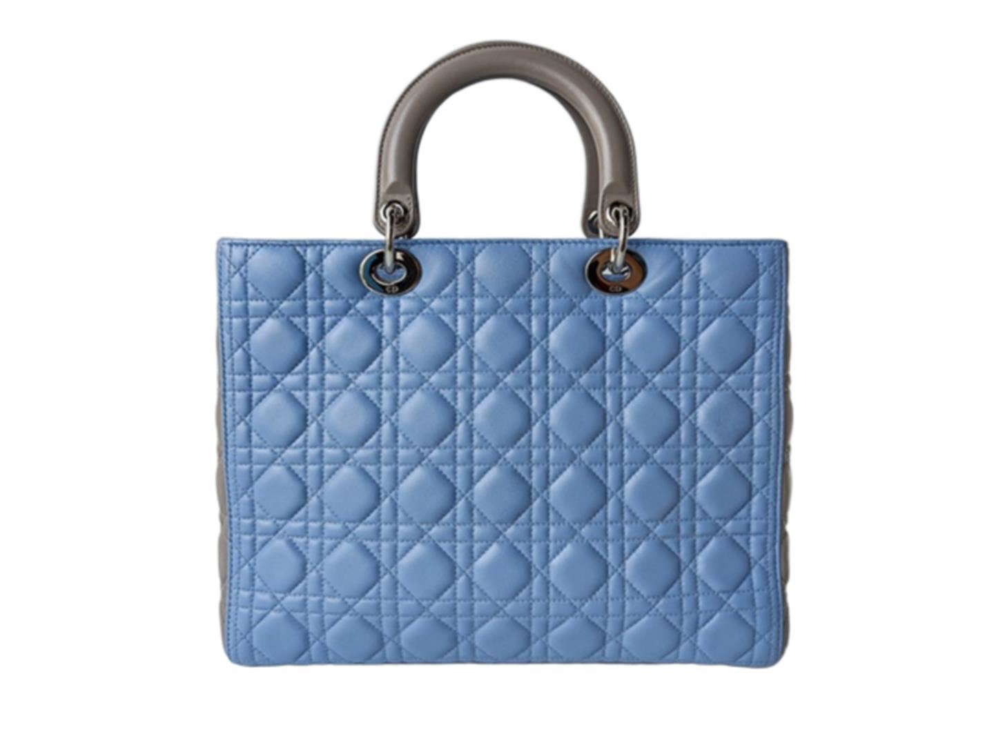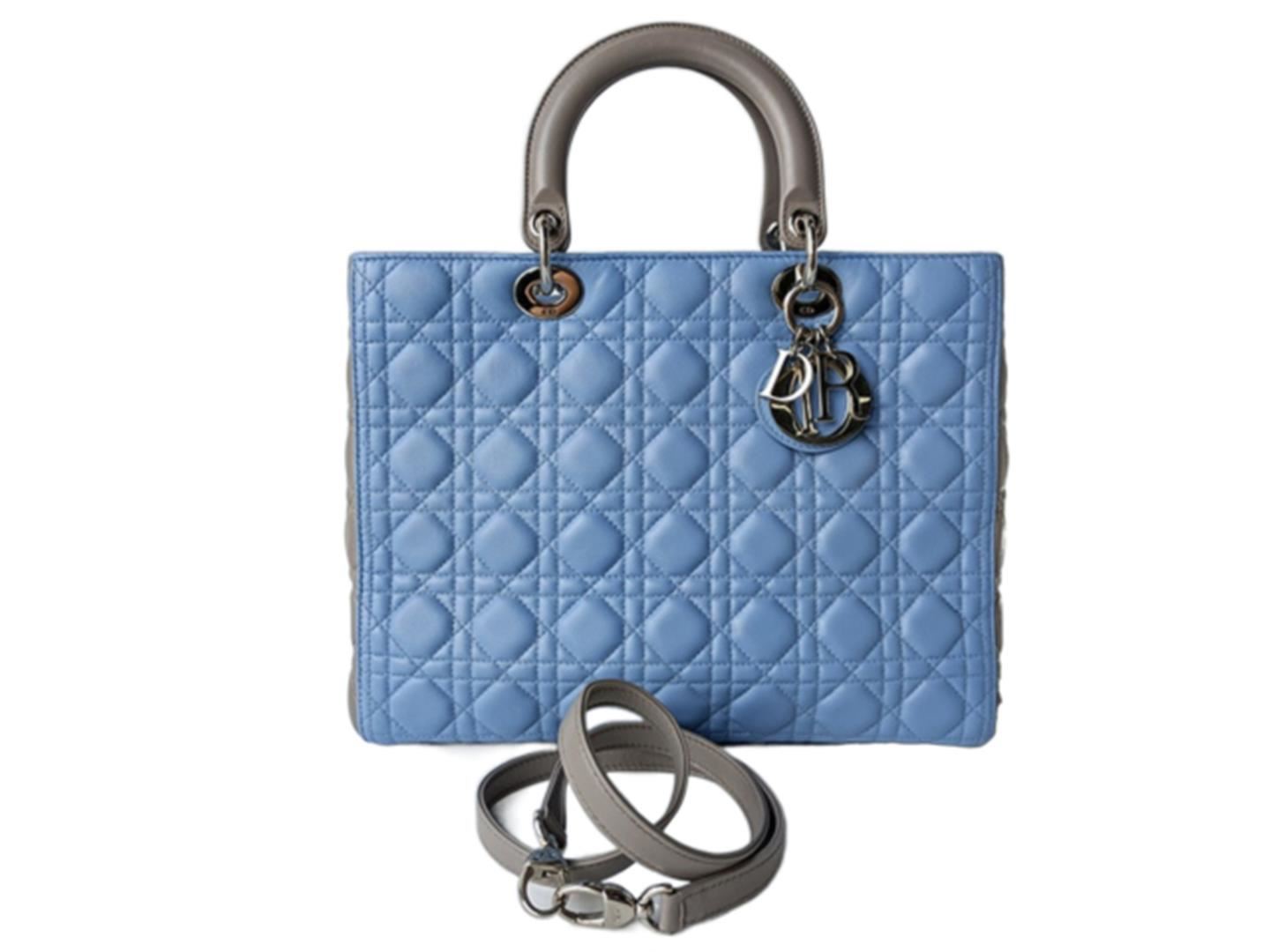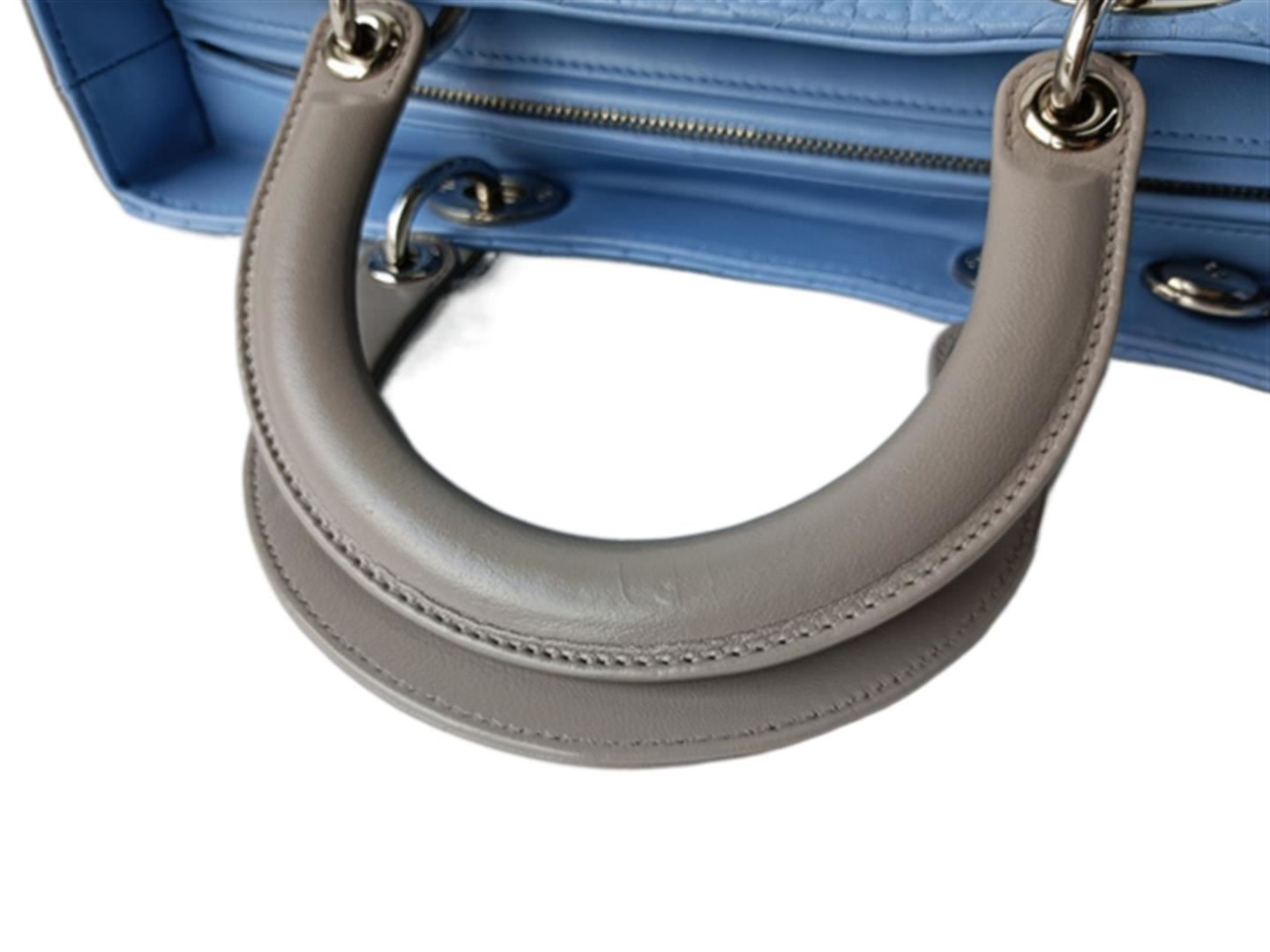 One Dior Large Lady Dior. Item is sold AS-IS. All available information is listed in the description and shown in the photo. Light Blue Gray