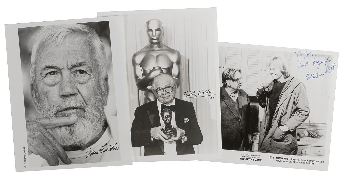 Three glossy signed photos, two 8 x 10 and one 10 x 8, each signed in felt tip by the respective director pictured. Signers are: Billy Wilder, John Huston, and Martin Ritt (ins). In fine condition.