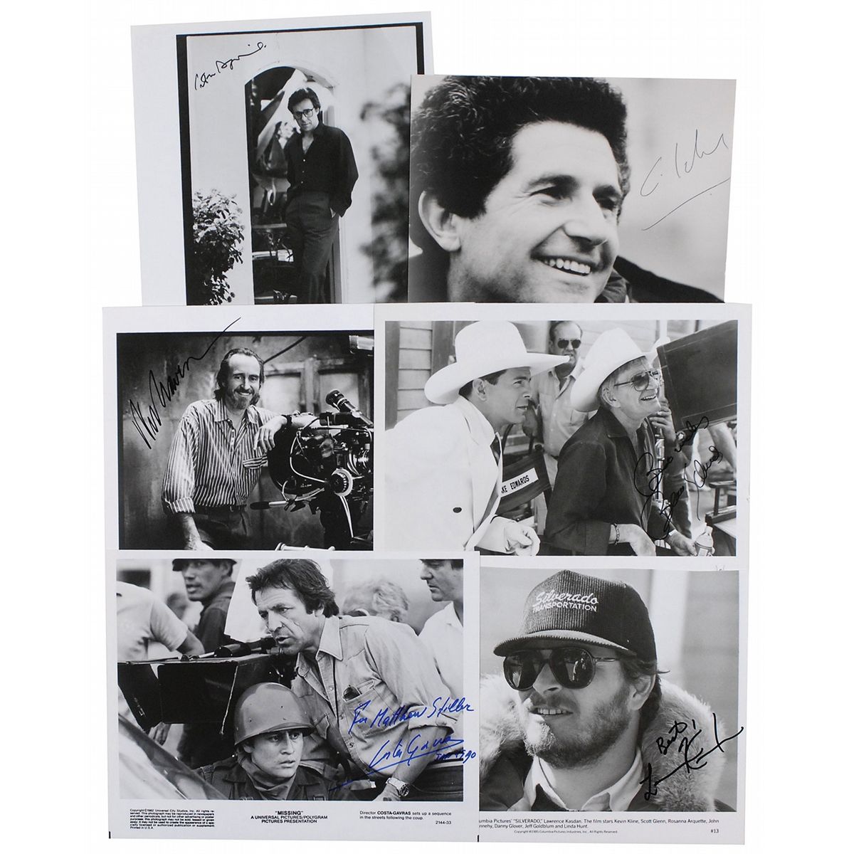 Six glossy publicity photos, 8 x 10 and 10 x 8 (one trimmed to 8.5 x 6.75), each signed in blue or black ink by the director pictured. Signers are: Claude Lelouch, Wes Craven, Lawrence Kasdan, Peter Bogdanovich, Costa-Gavras (ins), and Blake Edwards. In overall fine condition.