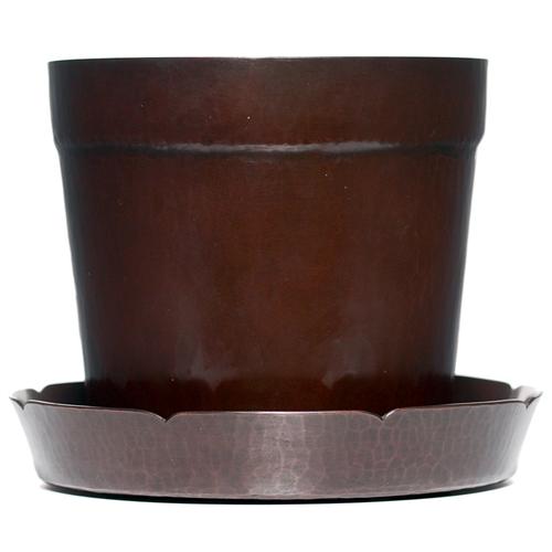 Rare Dirk Van Erp planter, flared cylindrical form with underplate in hammered copper, original patina, impressed marks, 6.5"w x 5"h