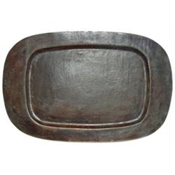 Dirk Van Erp tray, large form in hammered copper, original dark bronze patina, impressed mark, 19"w