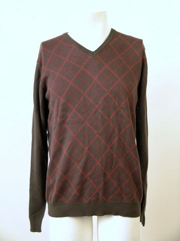 From the much loved Courteney Cox, Ian Hart tabloid series "Dirt" (2007), this is Don's (Ian Hat's) hero screen worn sweater. It is a brown diamond pattern "Ben Sherman" style. (Size L).