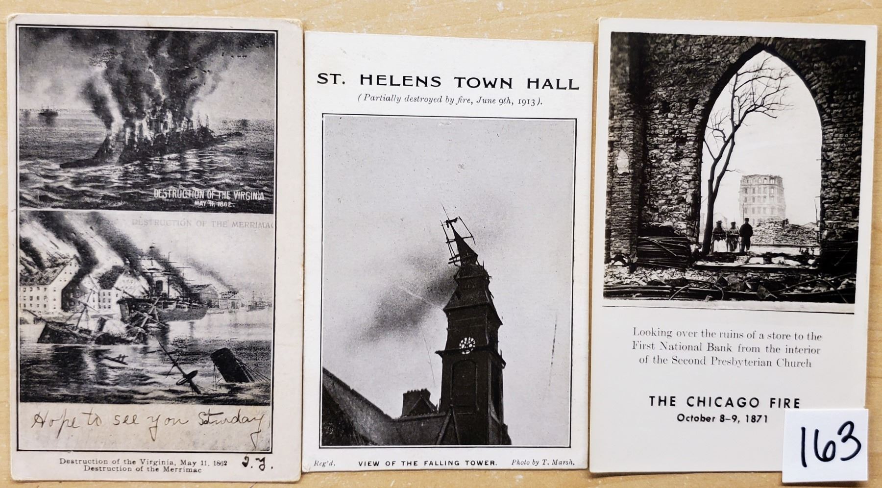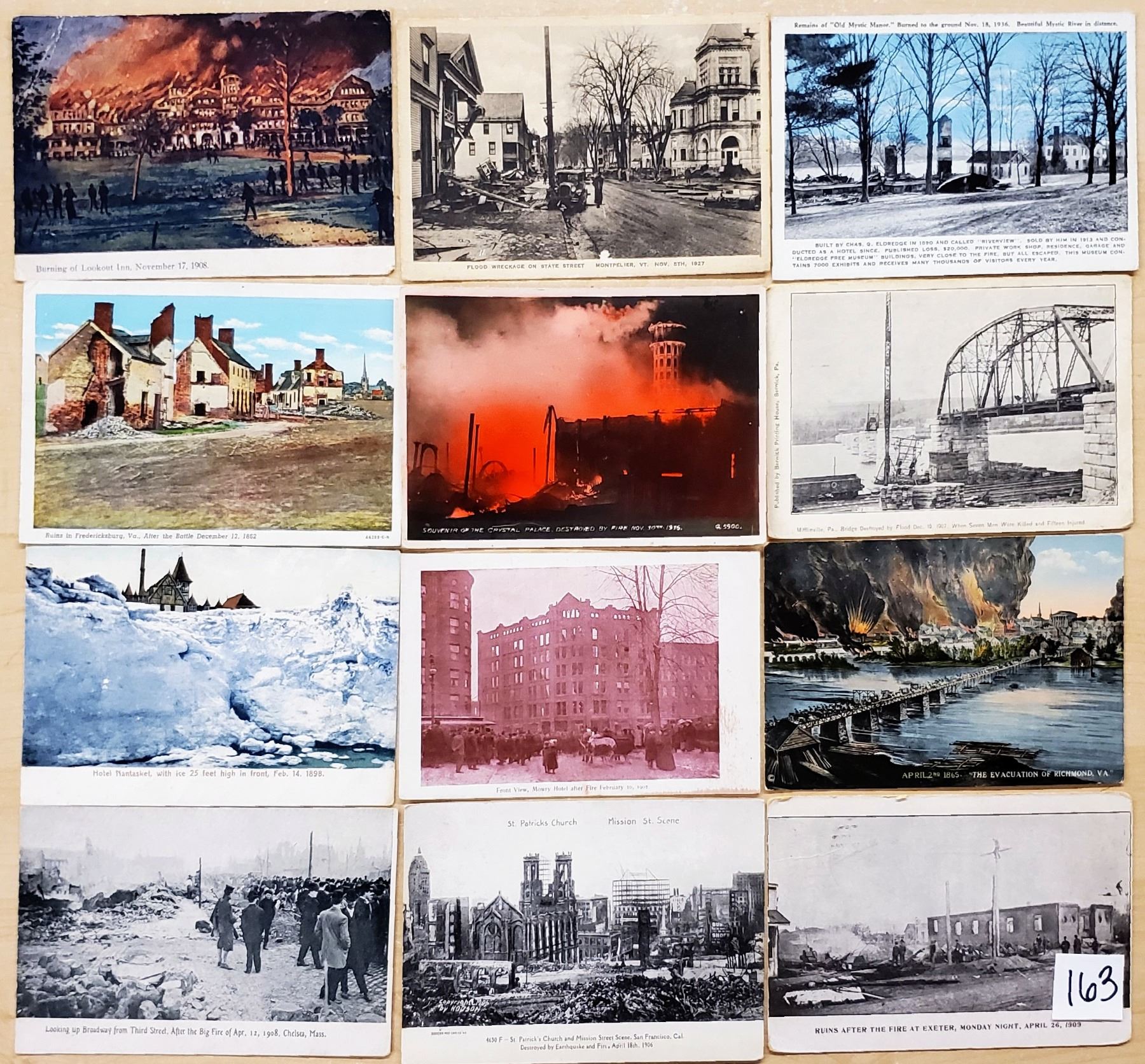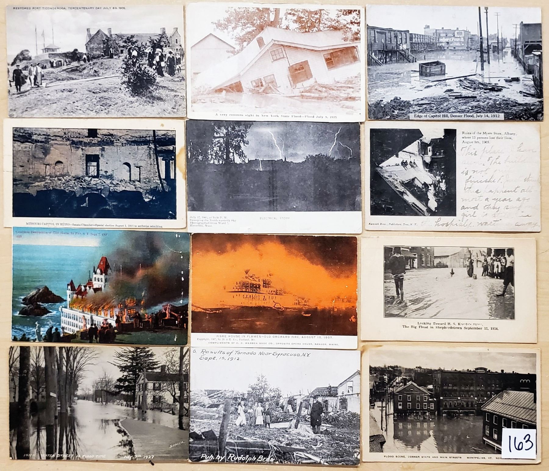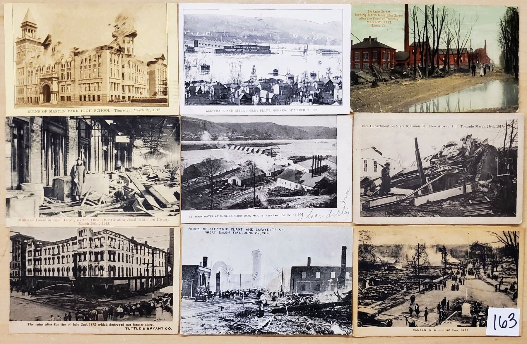 Approx. 45 early disaster postcards. Fire, floods, etc.