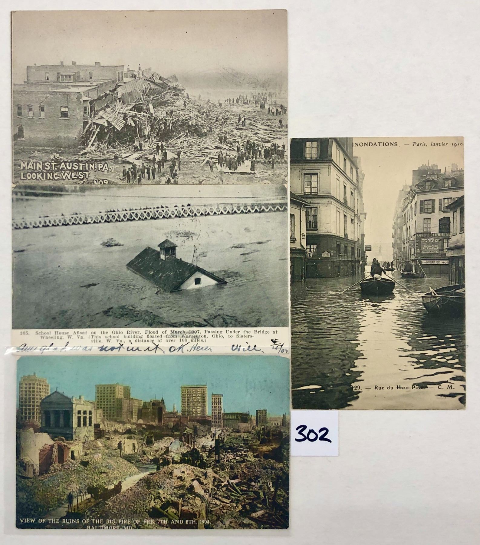 Approx. 45 disaster postcards. Mostly US. Early.