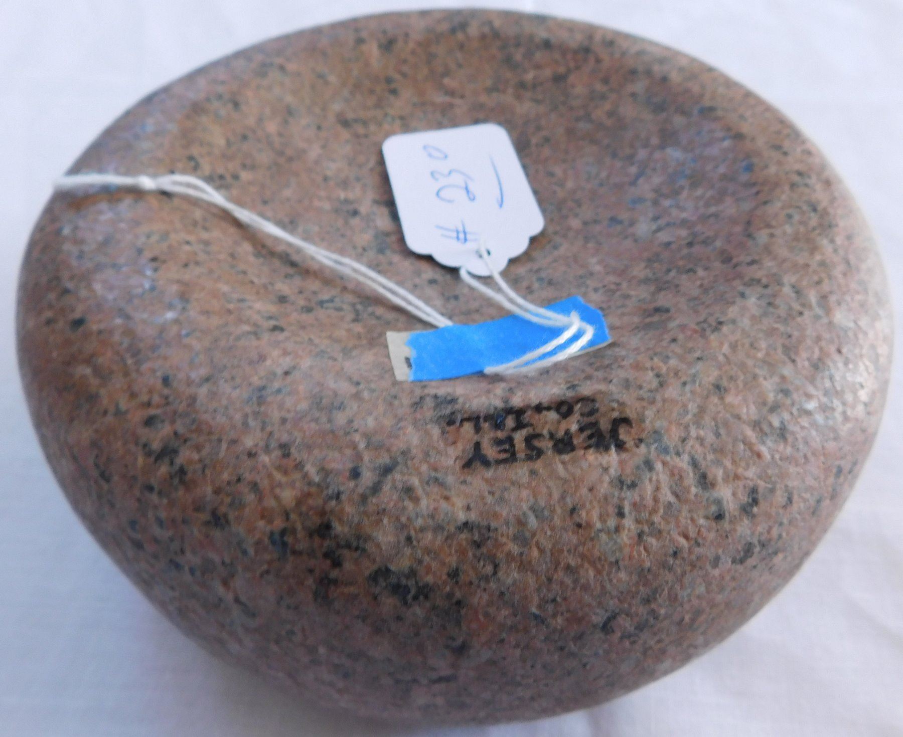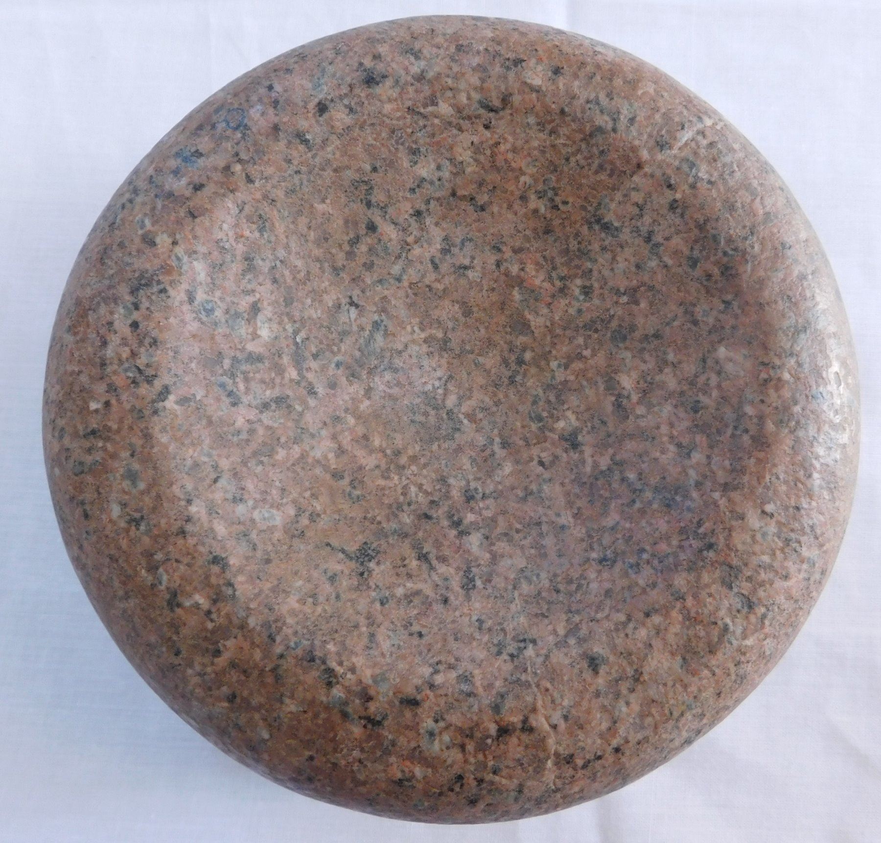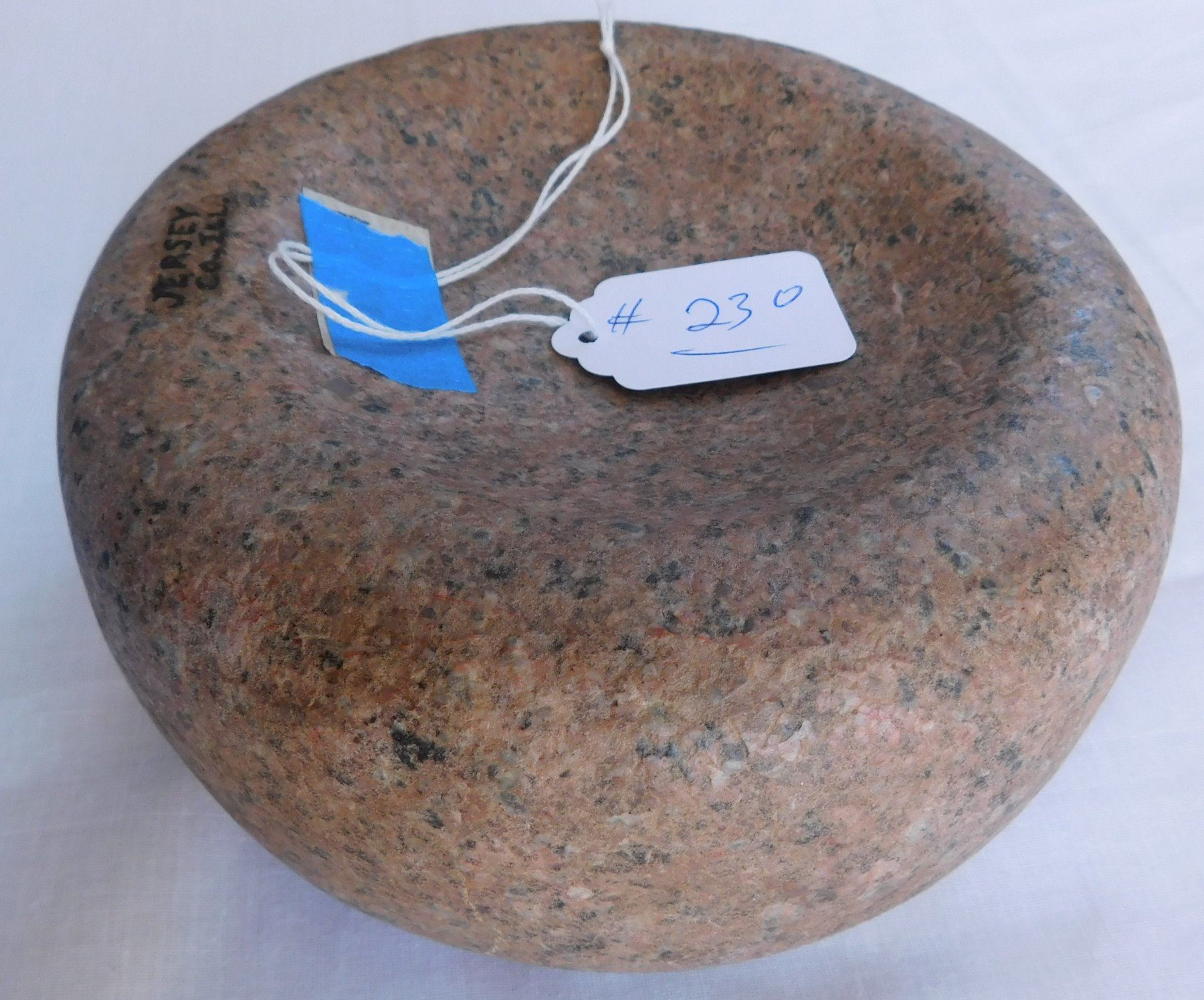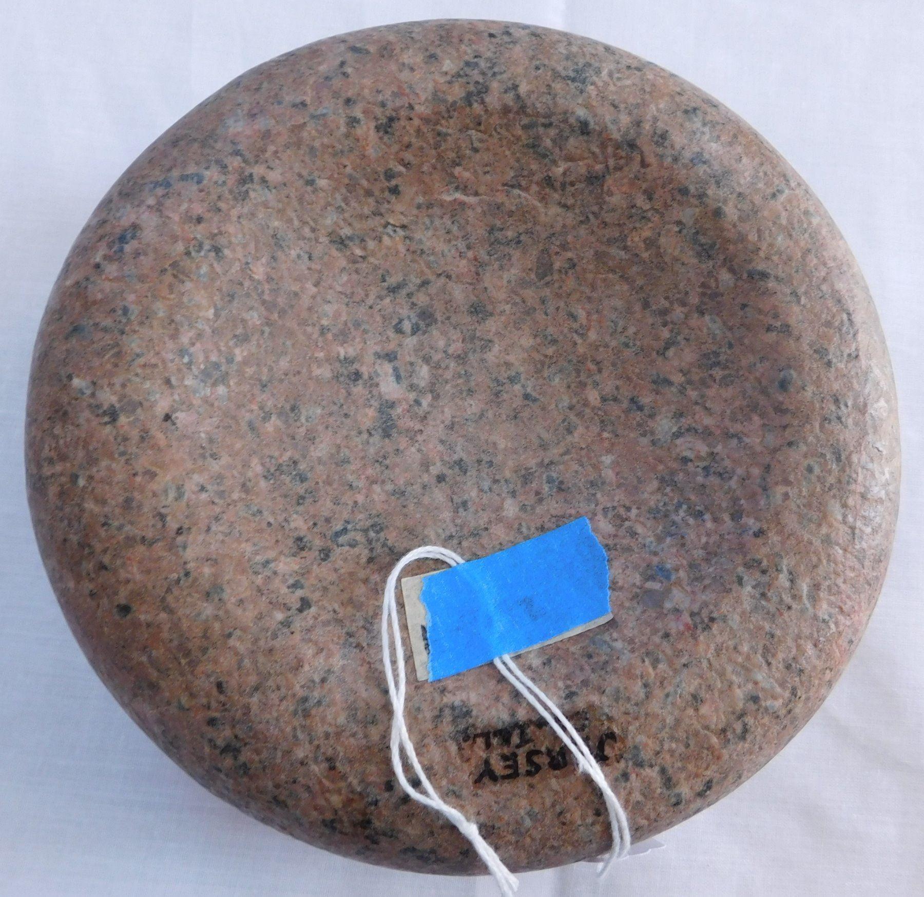 Discoidal Stone, pre-historic item. Made of granite, the item measures 6 7/8" x 3". Jersey County, Illinois. Condition: Good, see images. Shipping: $26.50 w/insurance and signature, due to value.