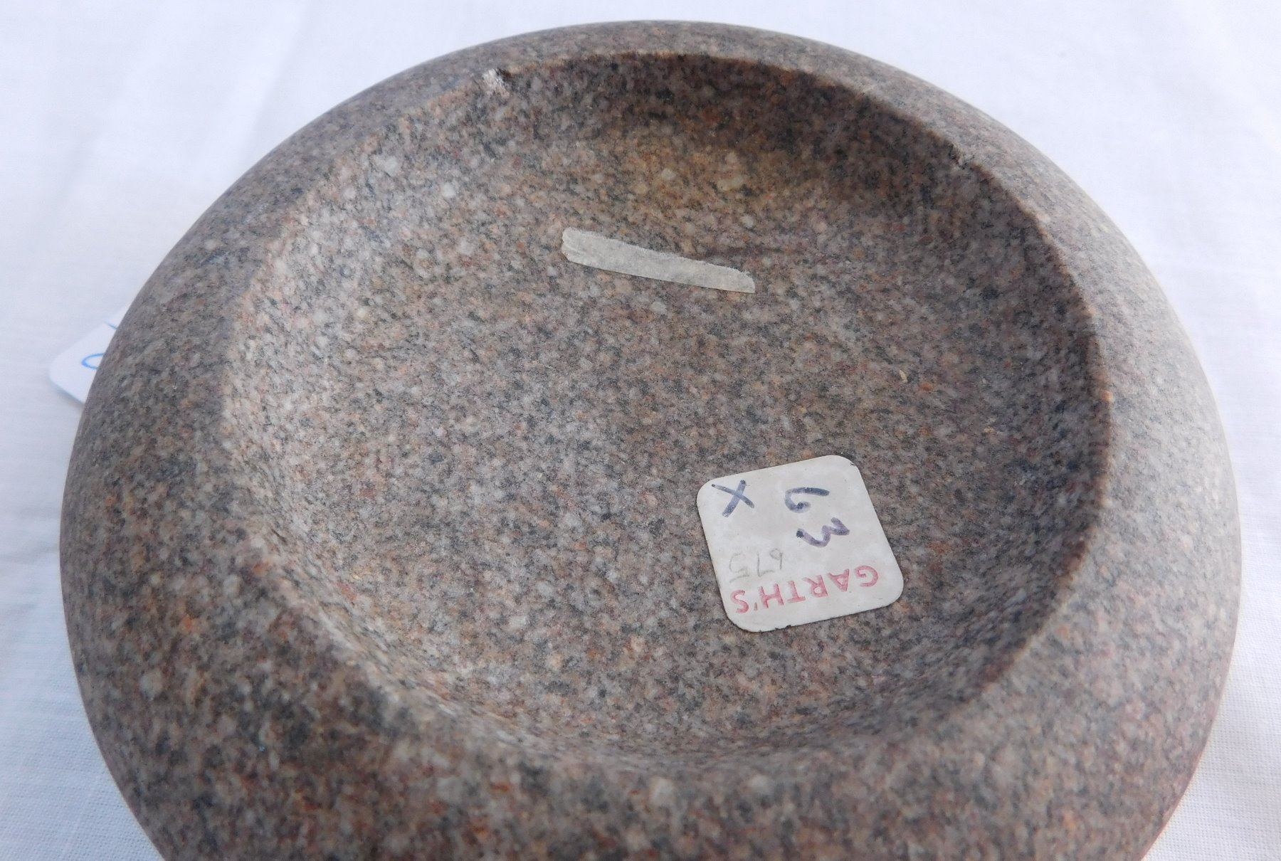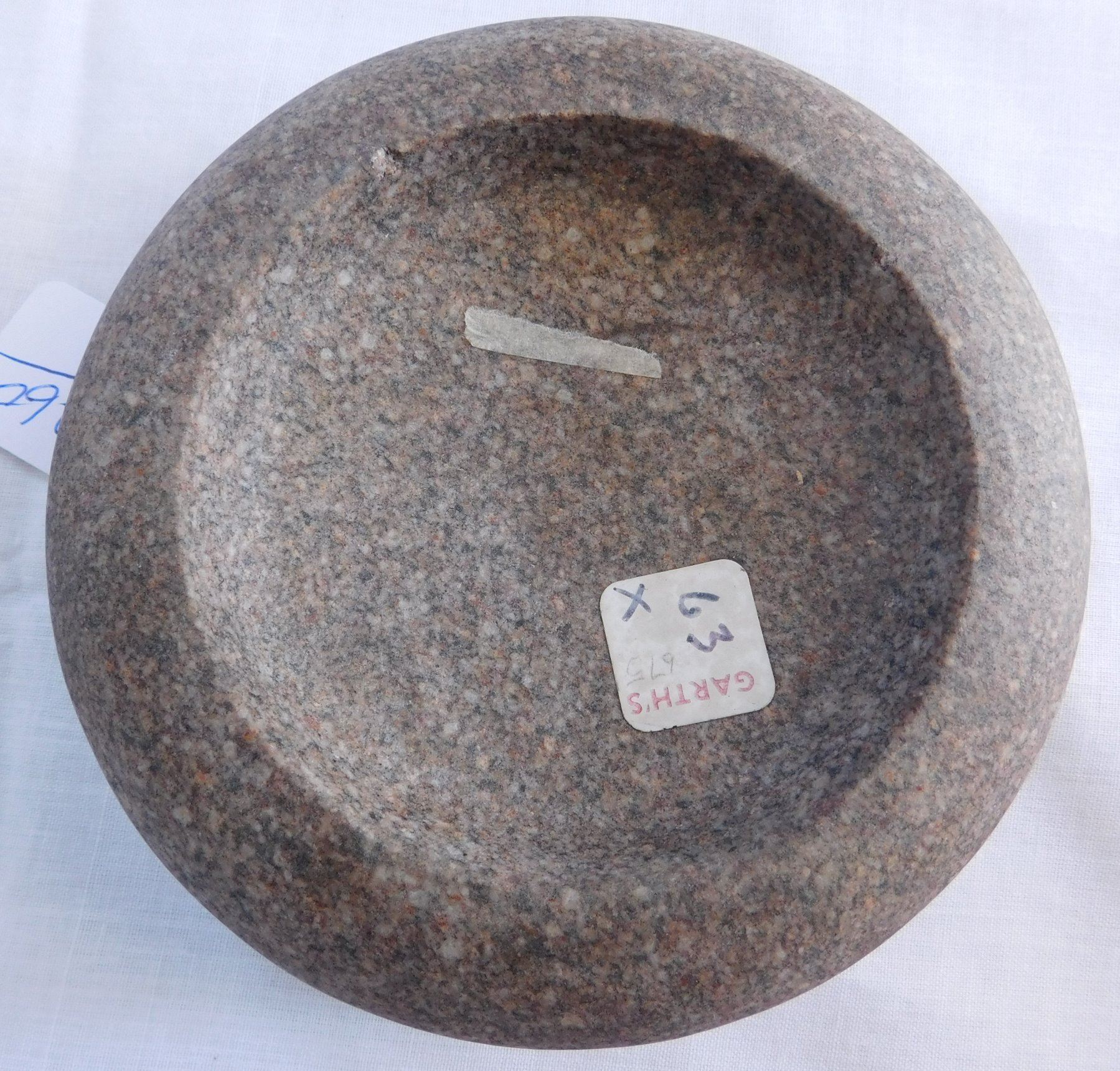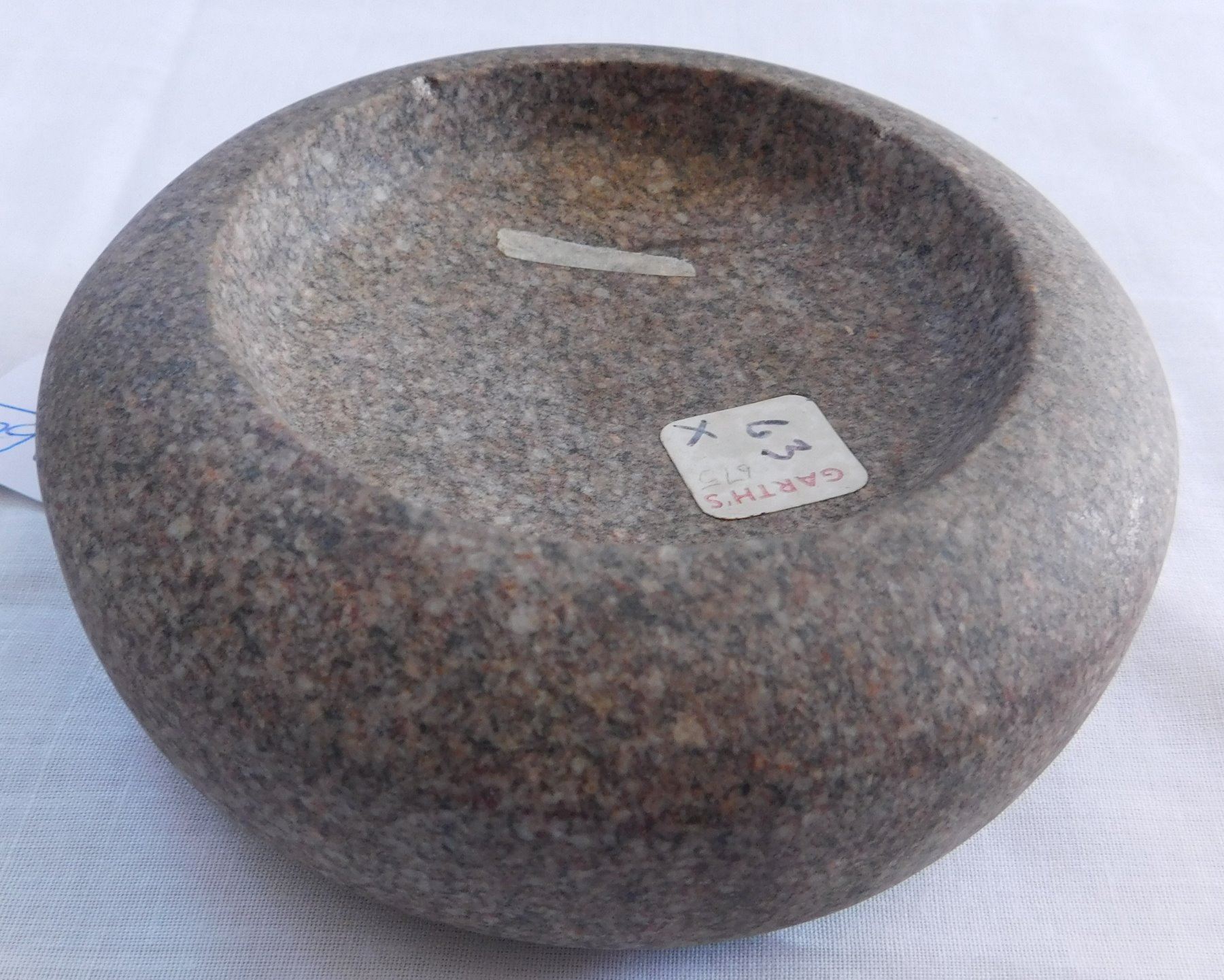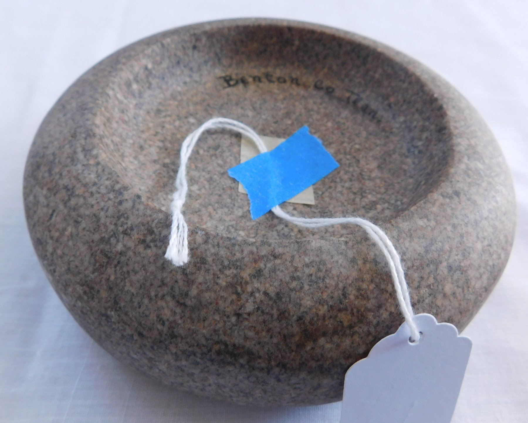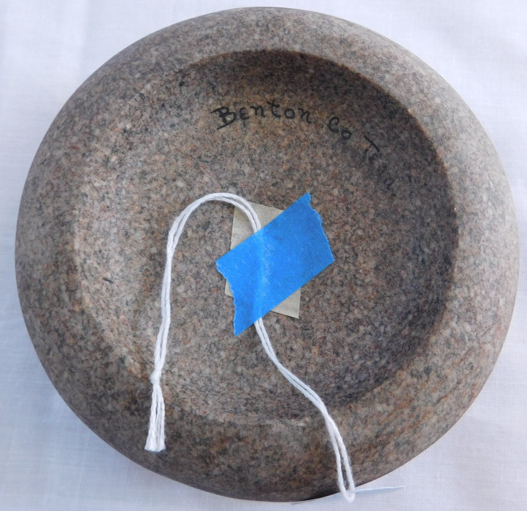 Discoidal Stone, pre-historic item. Made of granite, the item measures 5" x 2". Benton County, Tennesse. Condition: Good, see images. Shipping: $20.50 w/insurance and signature.