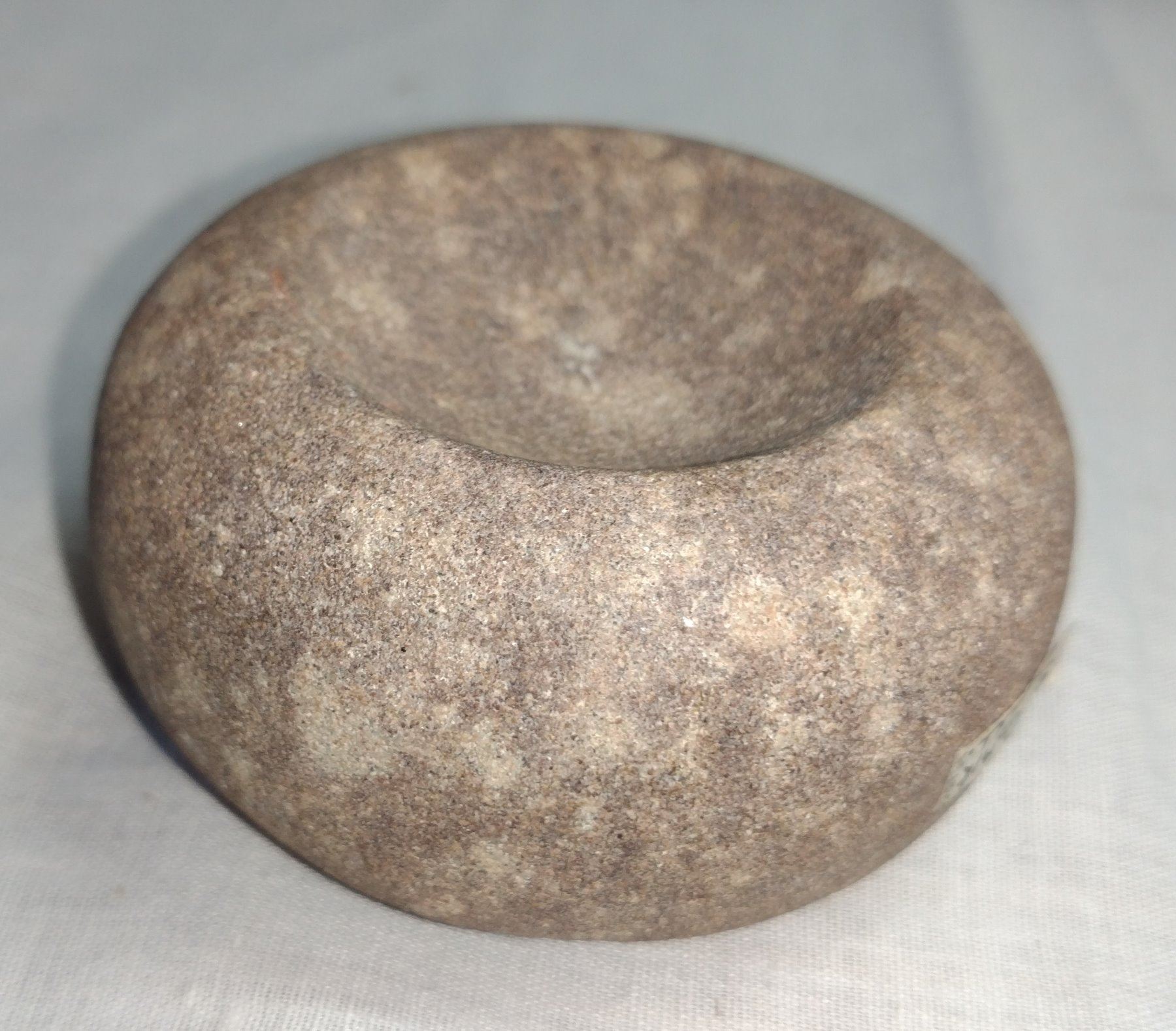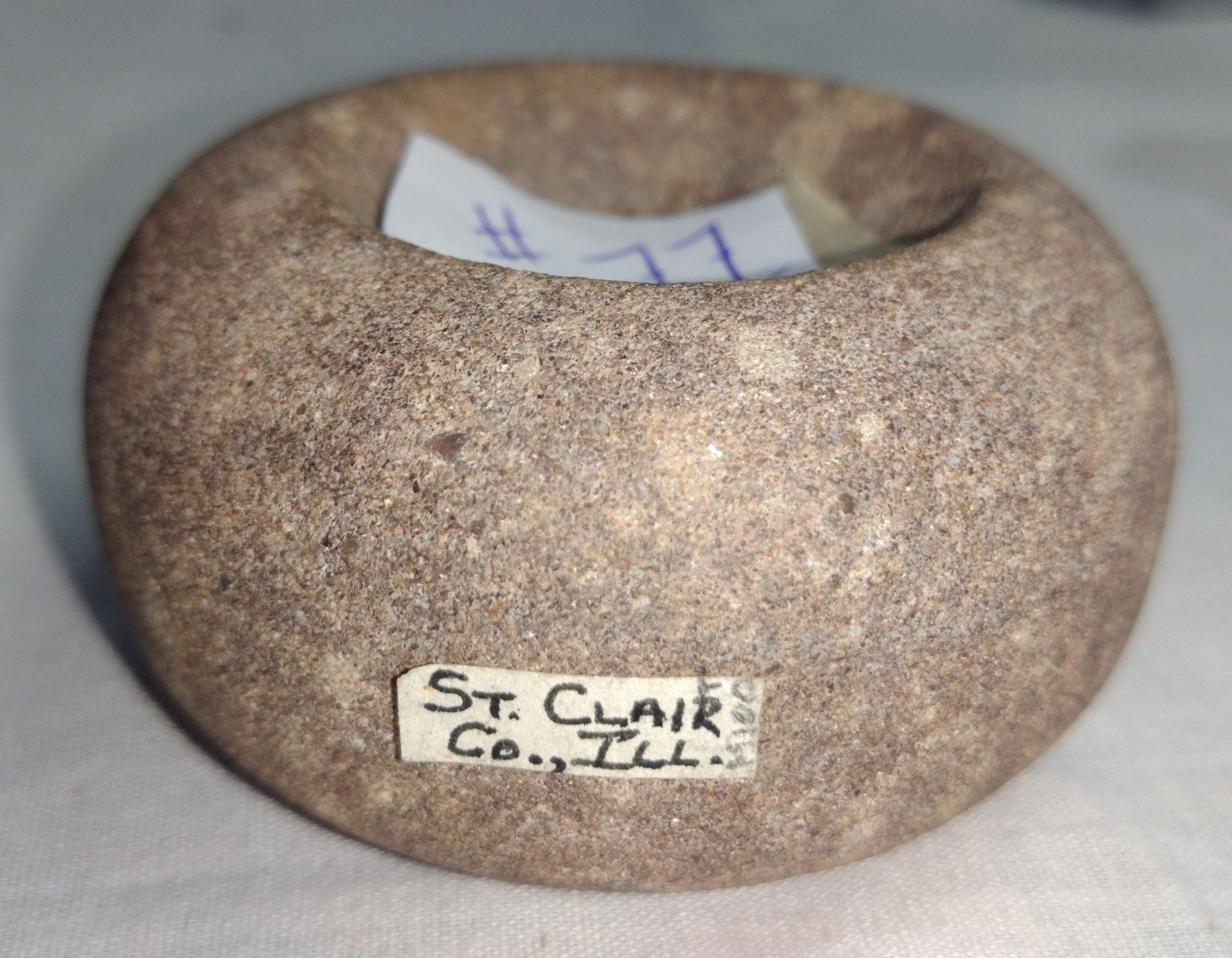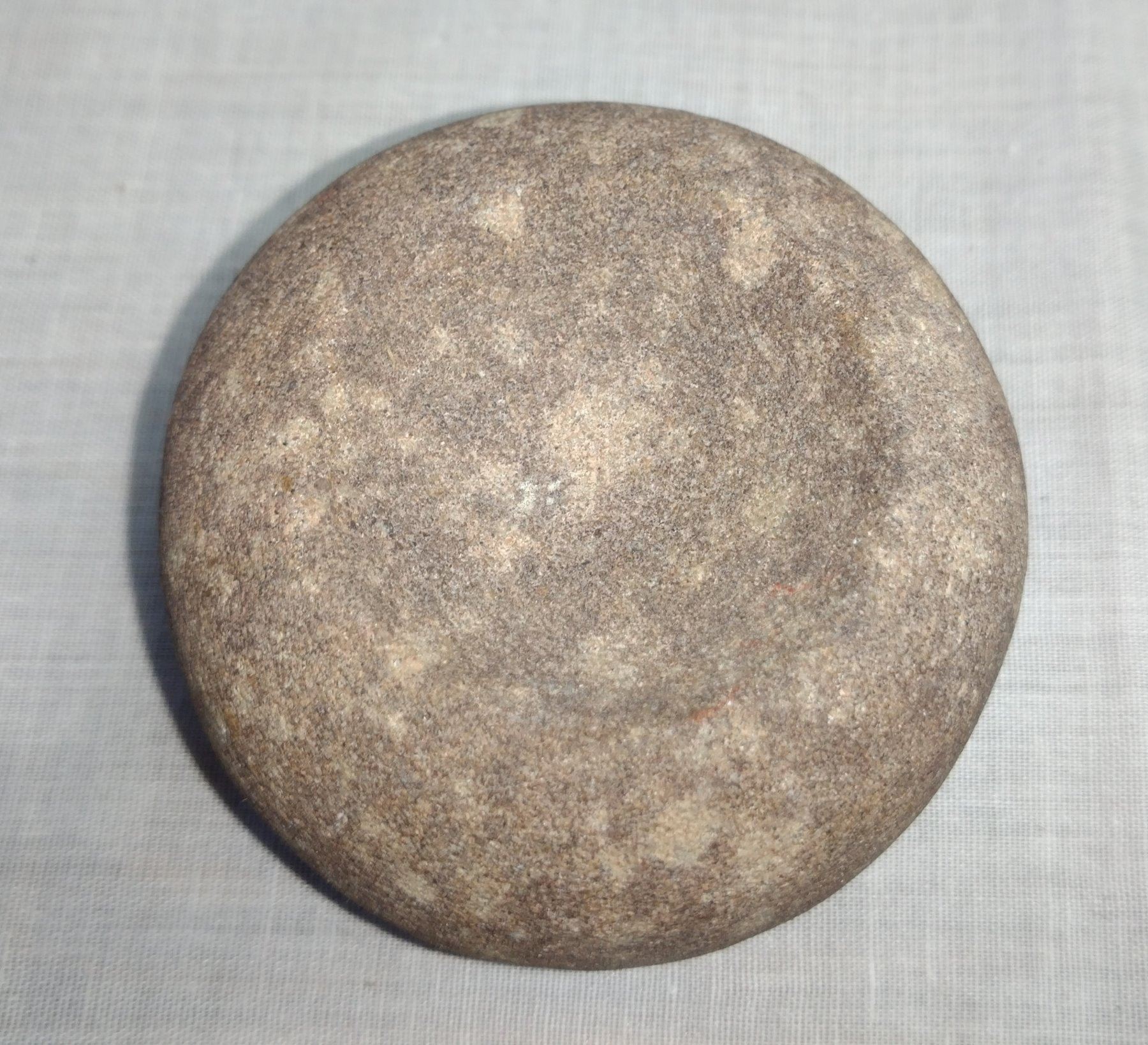 Discoidal Stone, pre-historic item. Made of porphyry, the item measures 2 3/4". St. Claire Co. Illinois. Condition: Good, see images. Shipping: $14.50 w/insurance and signature.