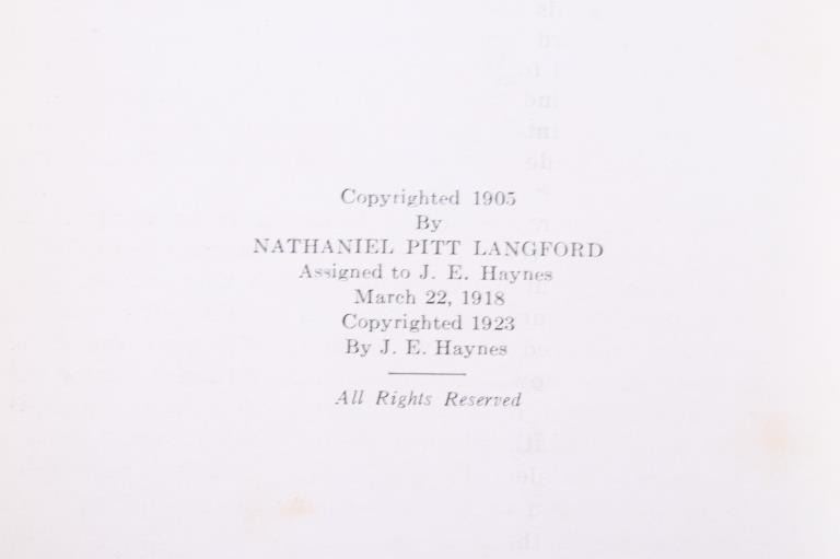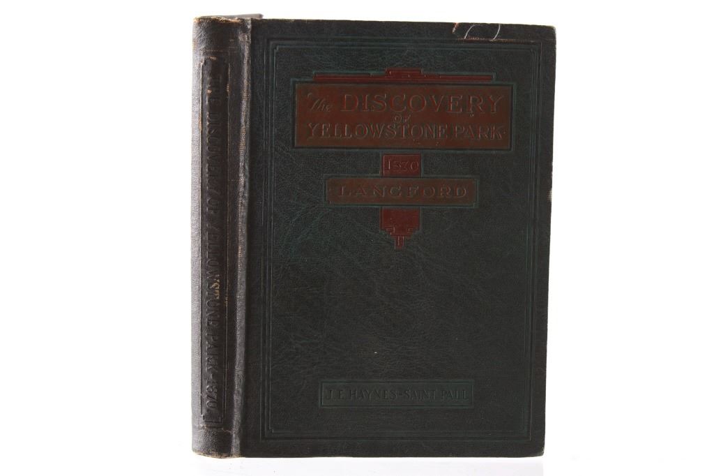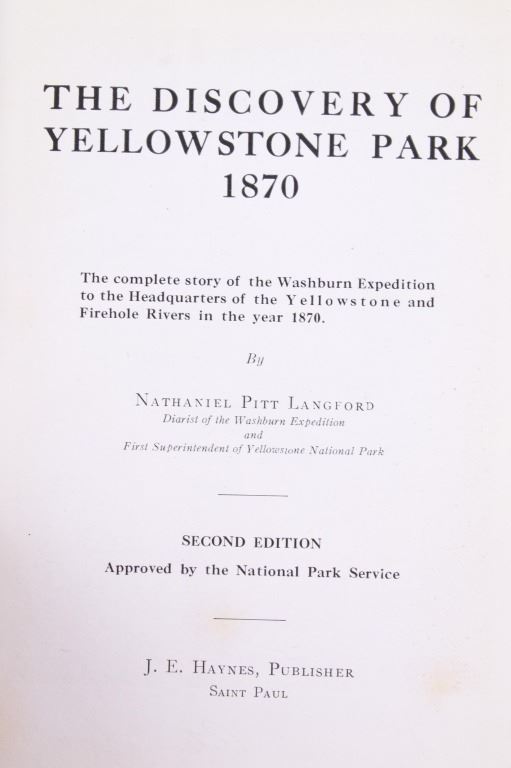 For your consideration is this rare book "The Discovery of Yellowstone Park 1870" by Nathaniel Pitt Langford. The book was published by J.E. Haynes in 1923. The book tells the story of the Washburn Expedition in 1870 and features many illustrations, photos, and maps. The book was written by N.P. Langford who was the diarist for the expedition and the first superintendent of Yellowstone. The condition of this book is good showing good preservation to the green leatherette covers and good overall condition to the pages. The binding and spine are in good condition. The measurements of this book are 5" x 7".