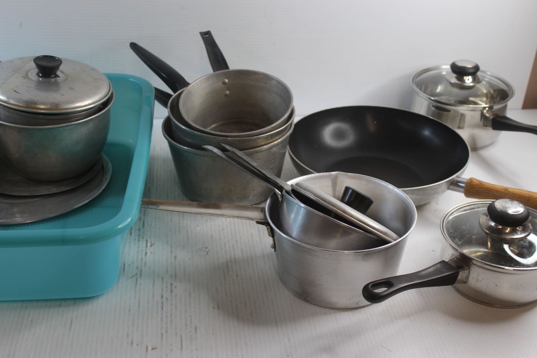 Dish Drying Container, Wok Pan and Pots with Lids