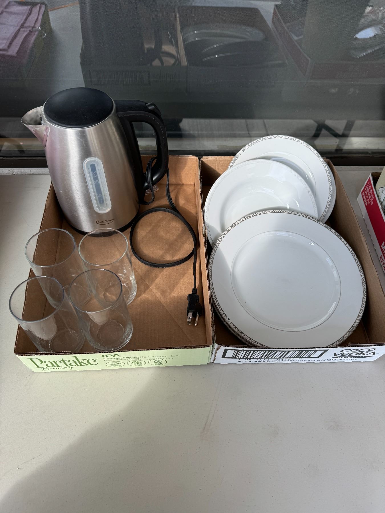 Dishes, glasses, kettle