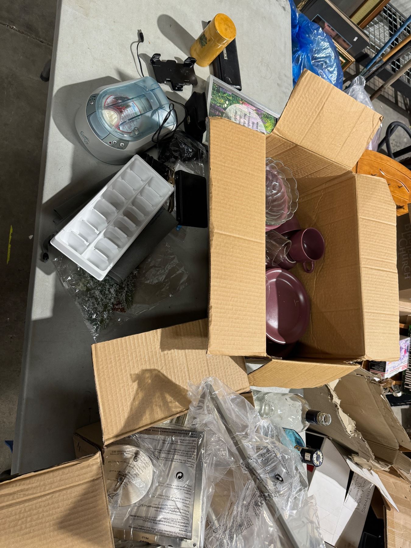 Dishes, light fixture and assorted items