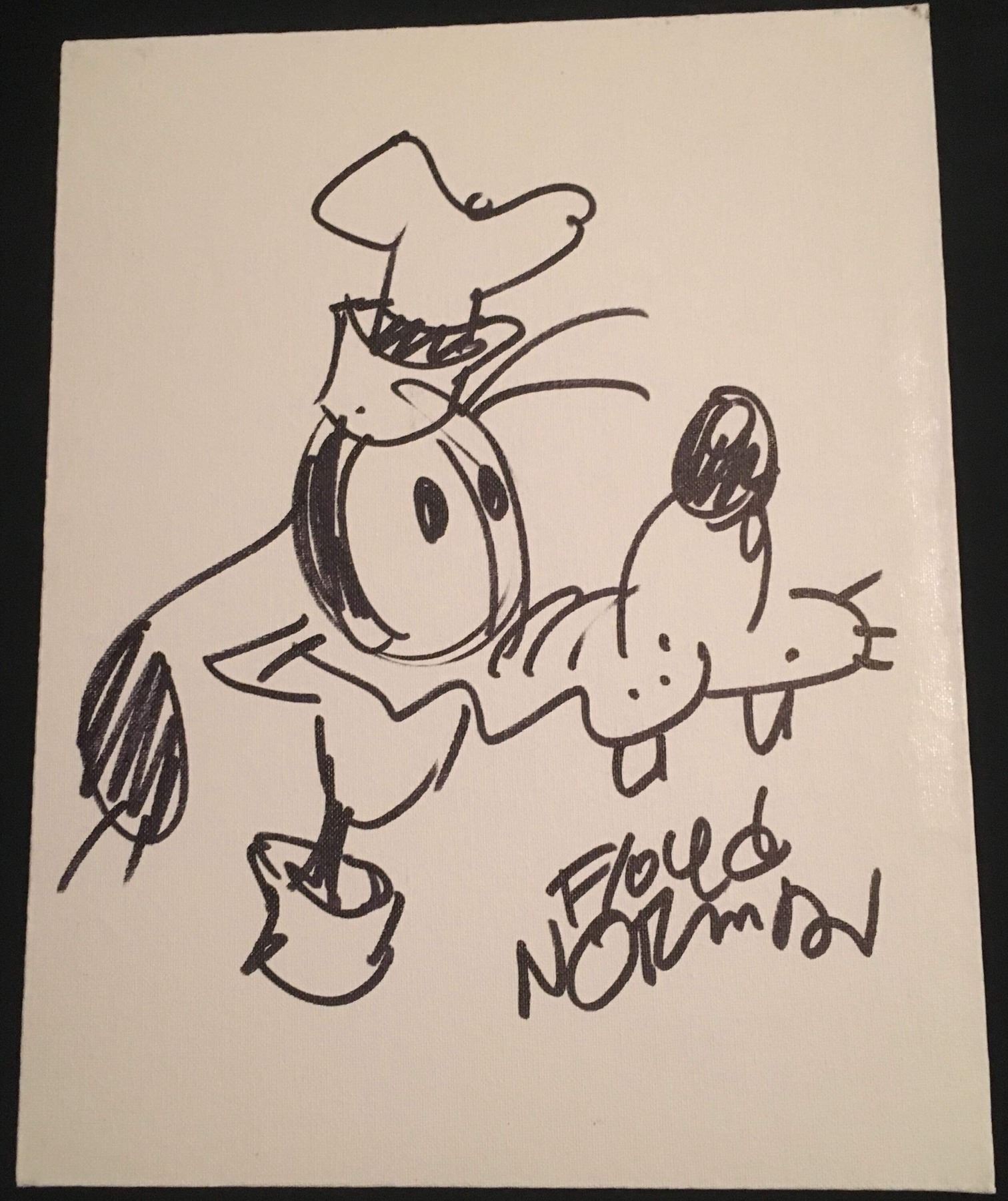 11" x 14" sketch of Goofy executed and signed by animator Floyd Norman.