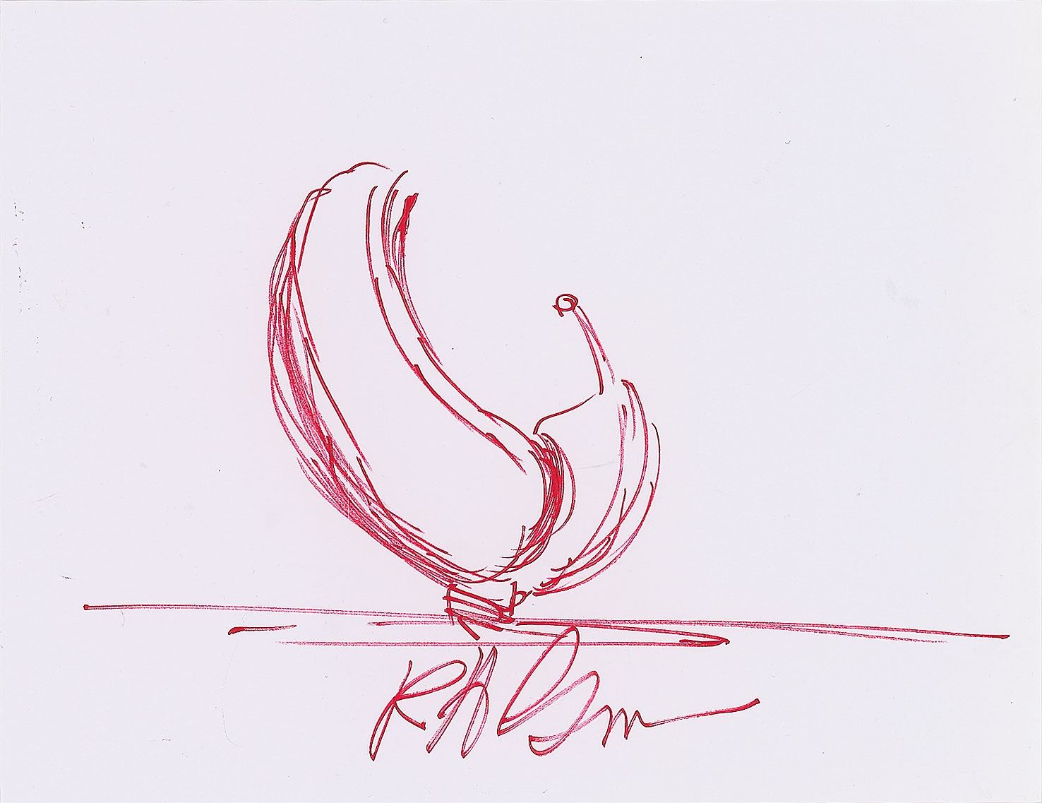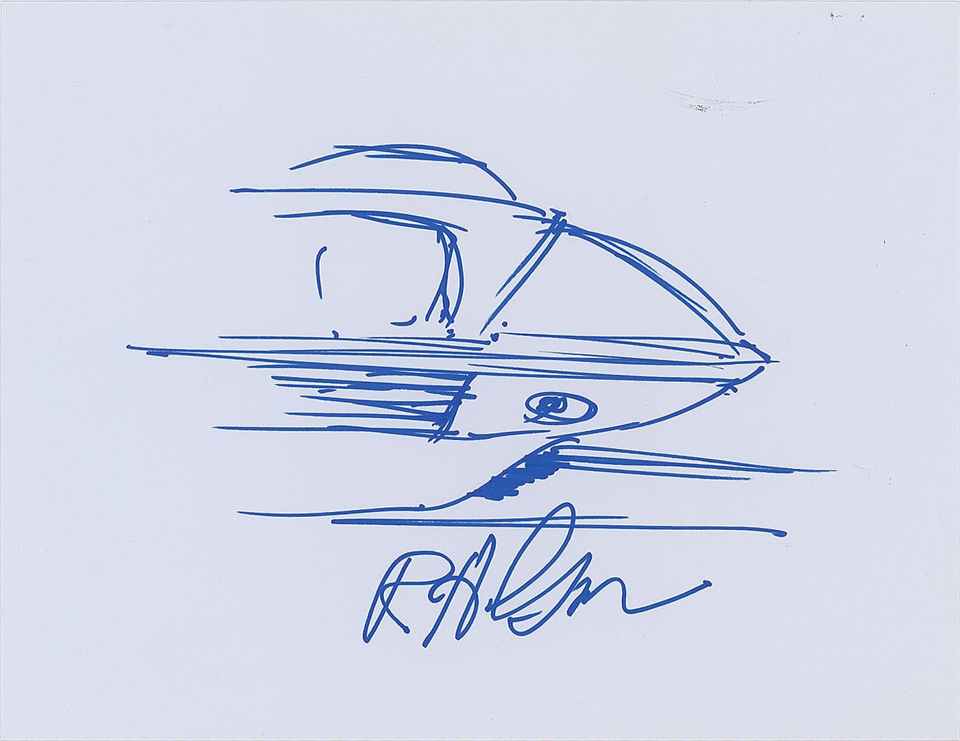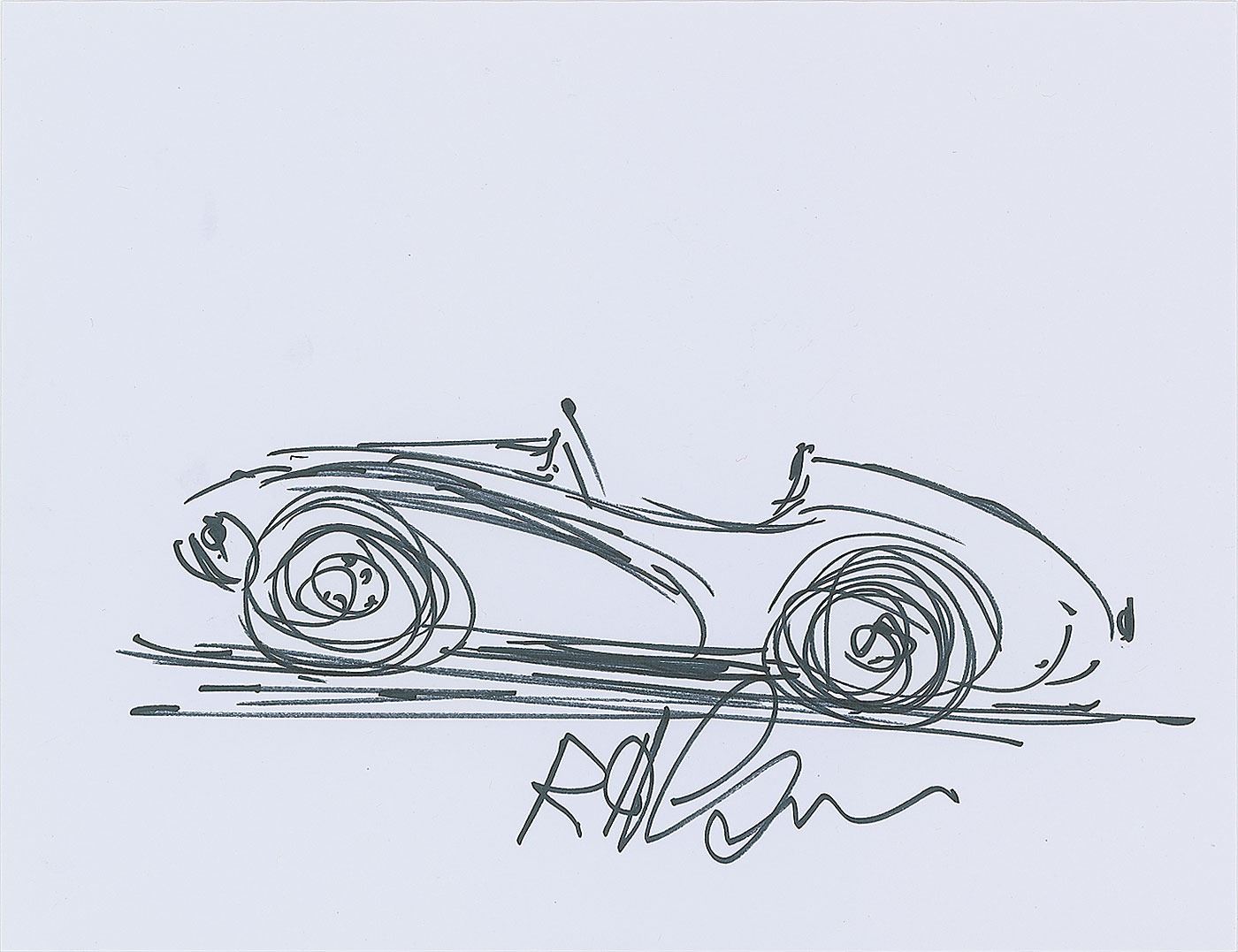 Three signed felt tip sketches by famed Disneyland amusement ride designer and Imagineer Bob Gurr, accomplished in felt tip on individual white 11 x 8.5 heavy paperstock sheets, with Gurr signing along the bottom of each, "R. H. Gurr." The sketches include: a side angle of a vehicle from the Autopia ride; a side view of the front of the Disneyland Monorail; and a side view of the Haunted Mansion 'doom buggy.' In overall very fine condition.