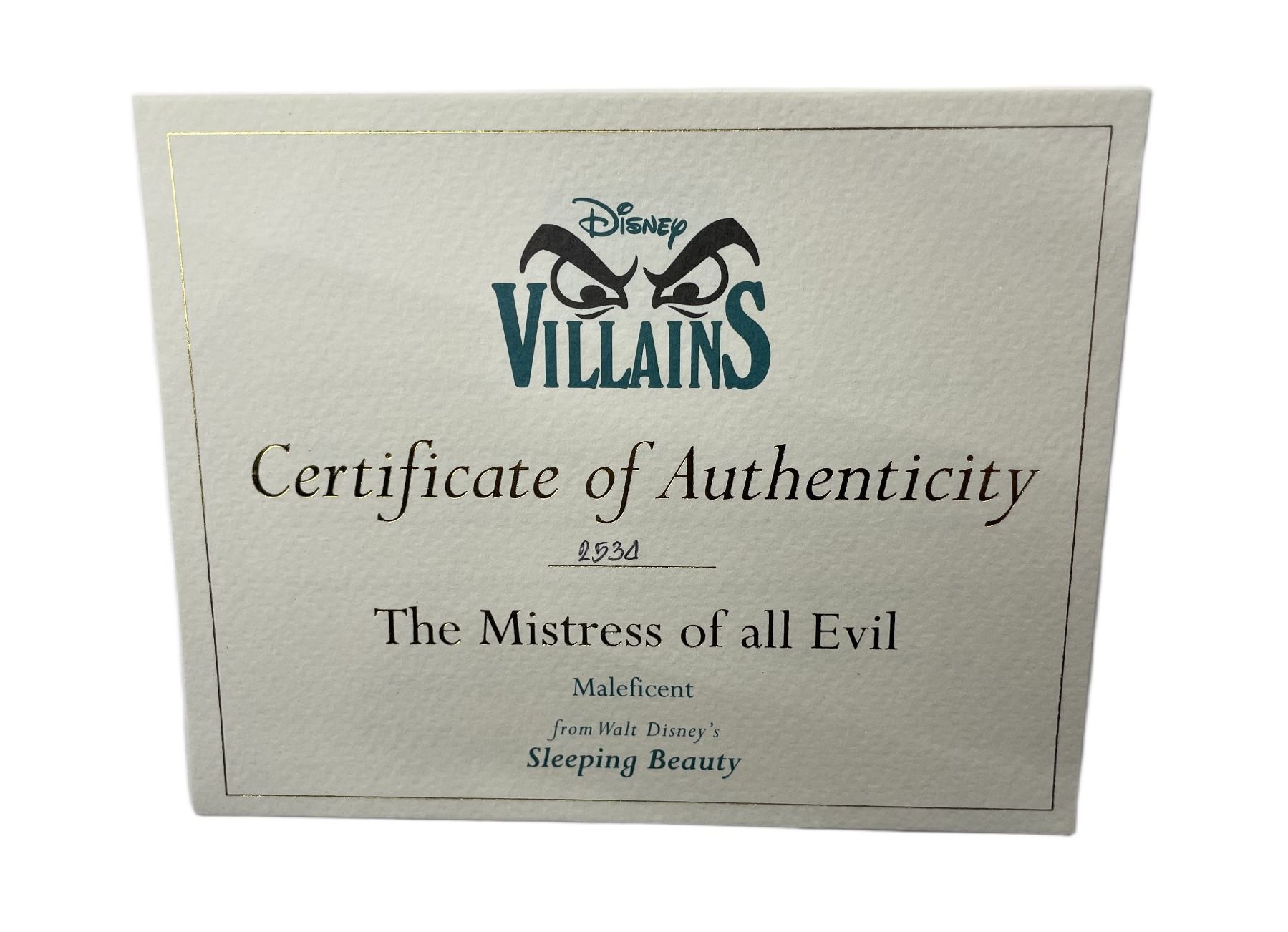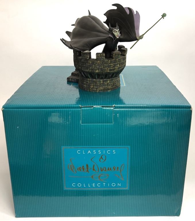 Figurine Item/Description: Walt Disney Classics Collection (WDCC) "The Mistress of All Evil" Maleficent porcelain figurine. It is inspired by the character's appearance in the 1959 animated film Sleeping Beauty. The figurine was a limited edition release for Walt Disney Collectors Society members in 1997. Includes original box and Certificate of Authenticity.