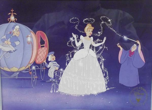 Disney Commemorative Litho: 1995 Cinderella. Framed in a wood frame, matted, under glass. Visual measures approx. 7 1/2''H x 10 1/2''W. Needs better backing for frame. Buyers Pay Actual Shipping and Handling Charges(see terms and conditions for more information).