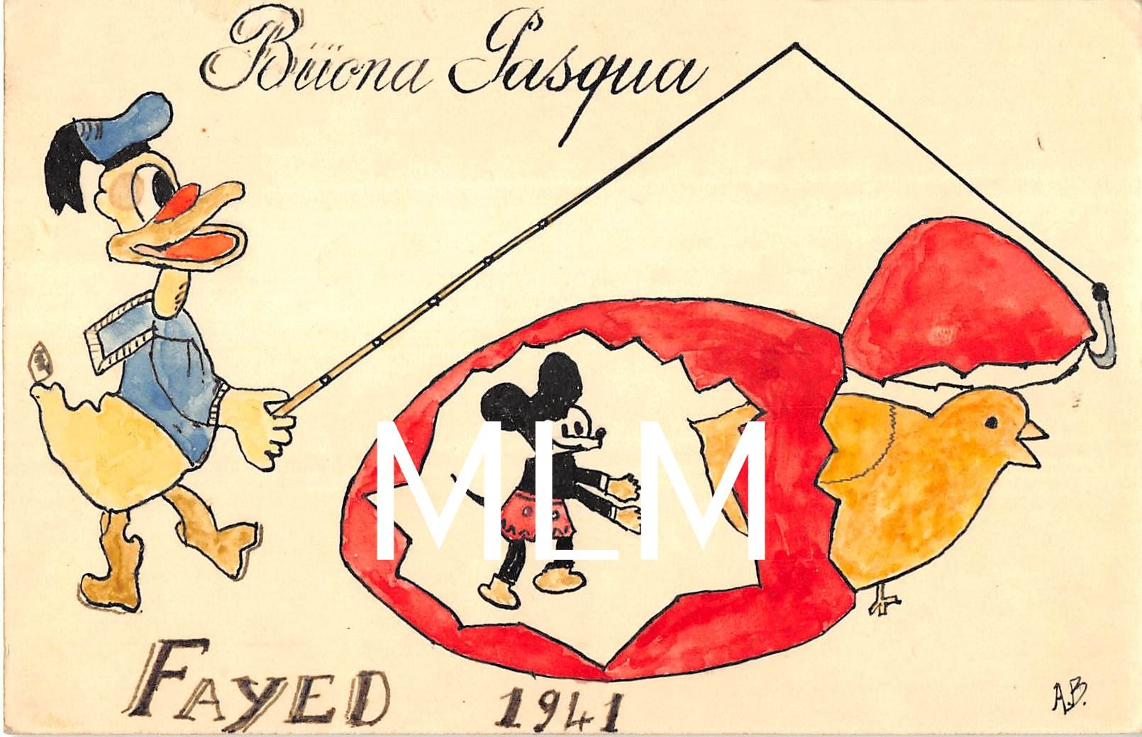 Disney Donald Duck & Mickey Mouse Handrawn Postcard