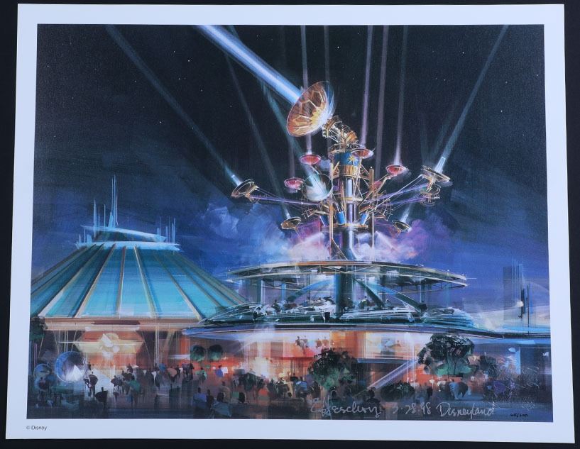 (Disneyland, Disney Gallery, c.1998). A very rare Disneyland Disney Gallery "Futuristic Vehicles and Observatron" limited edition lithograph signed by artist Eric Heschong. The lithograph is in a limited edition of 300 (#65 of 300) and comes with an official Disney Certificate of Authenticity. The lithograph is in good condition with normal wear from age and minimal handling. Item comes with a Grand Circle Tour Auctions COA.