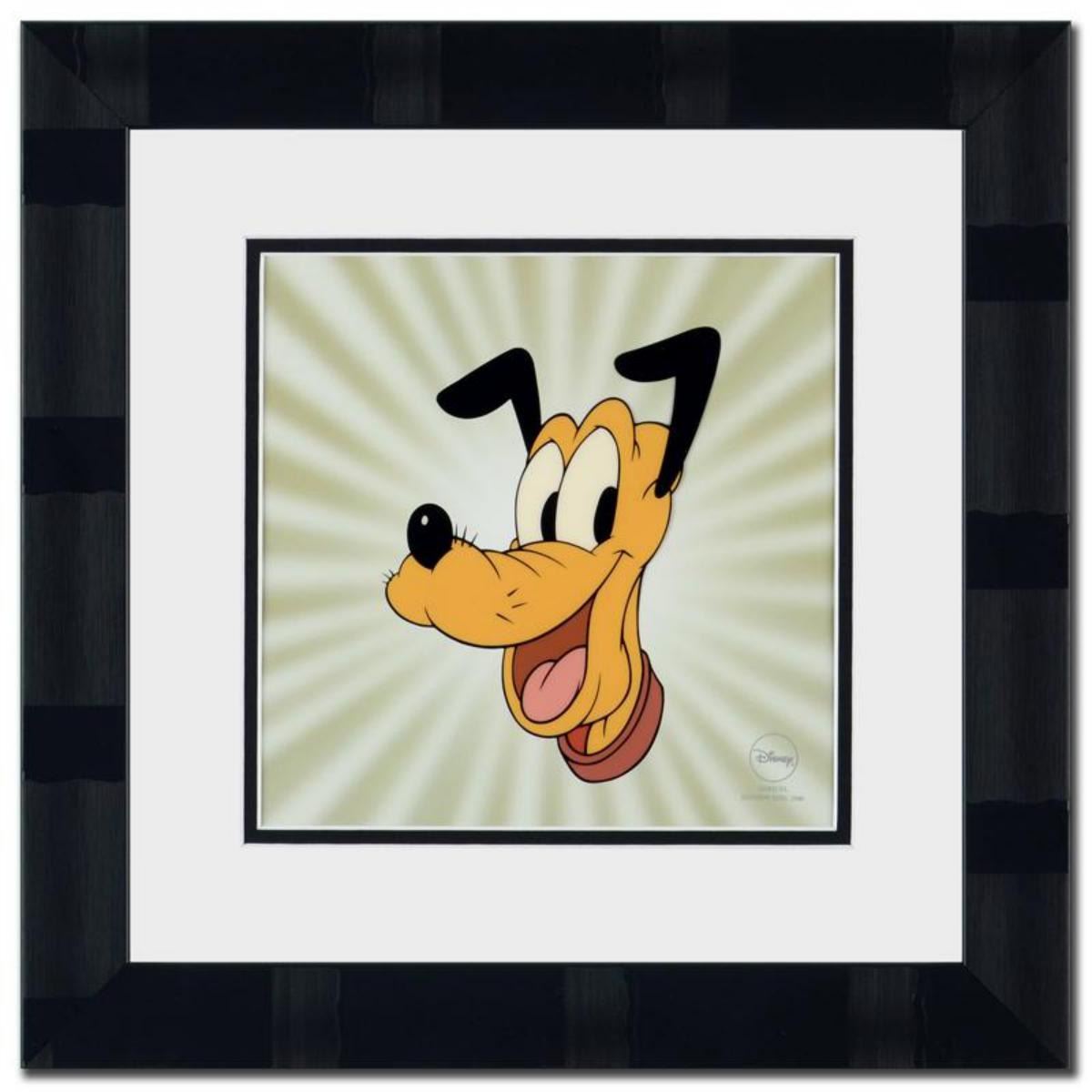 "Here's Pluto" is a limited edition sericel from a sold out edition. This officially licensed Disney edition comes with a certificate of authenticty and is framed. Measures approximately 16" x 16" (with frame); 8.5" x 8.5" (image). Reference #: 202731