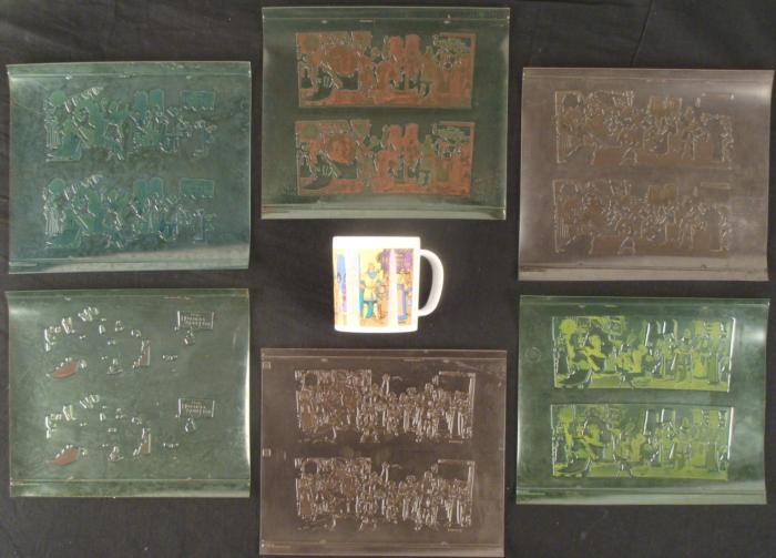 This mug design was in production in the mid 1990's. We don't know how many were produced, but we do know of only one original set of printing materials and this is it.