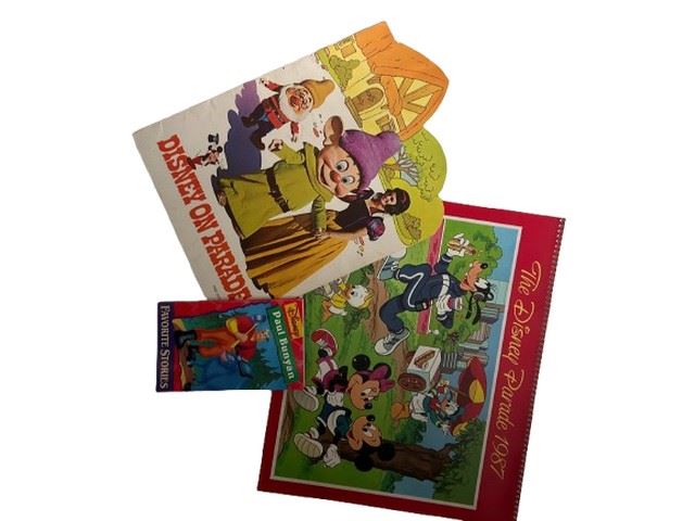 Complementing the program is the 1987 Disney Parade Calendar, which showcases twelve months of whimsical illustrations celebrating the park's most iconic processions. To round out the set, we’ve included the Paul Bunyan Favorite Stories mini-book, a charming vintage pocket-sized adventure that retells the American tall tale with classic Disney flair.