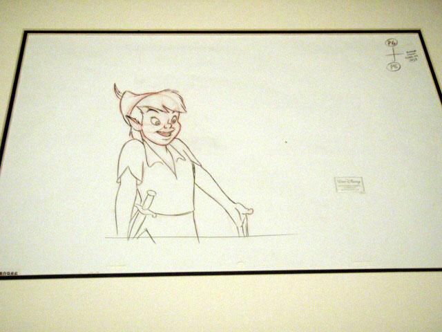 Subject: Peter Pan shrugging his shouldersMedium: Pencil drawing on paperSize: Approximately 12 1/2 x 17 inches Double matted in white and black