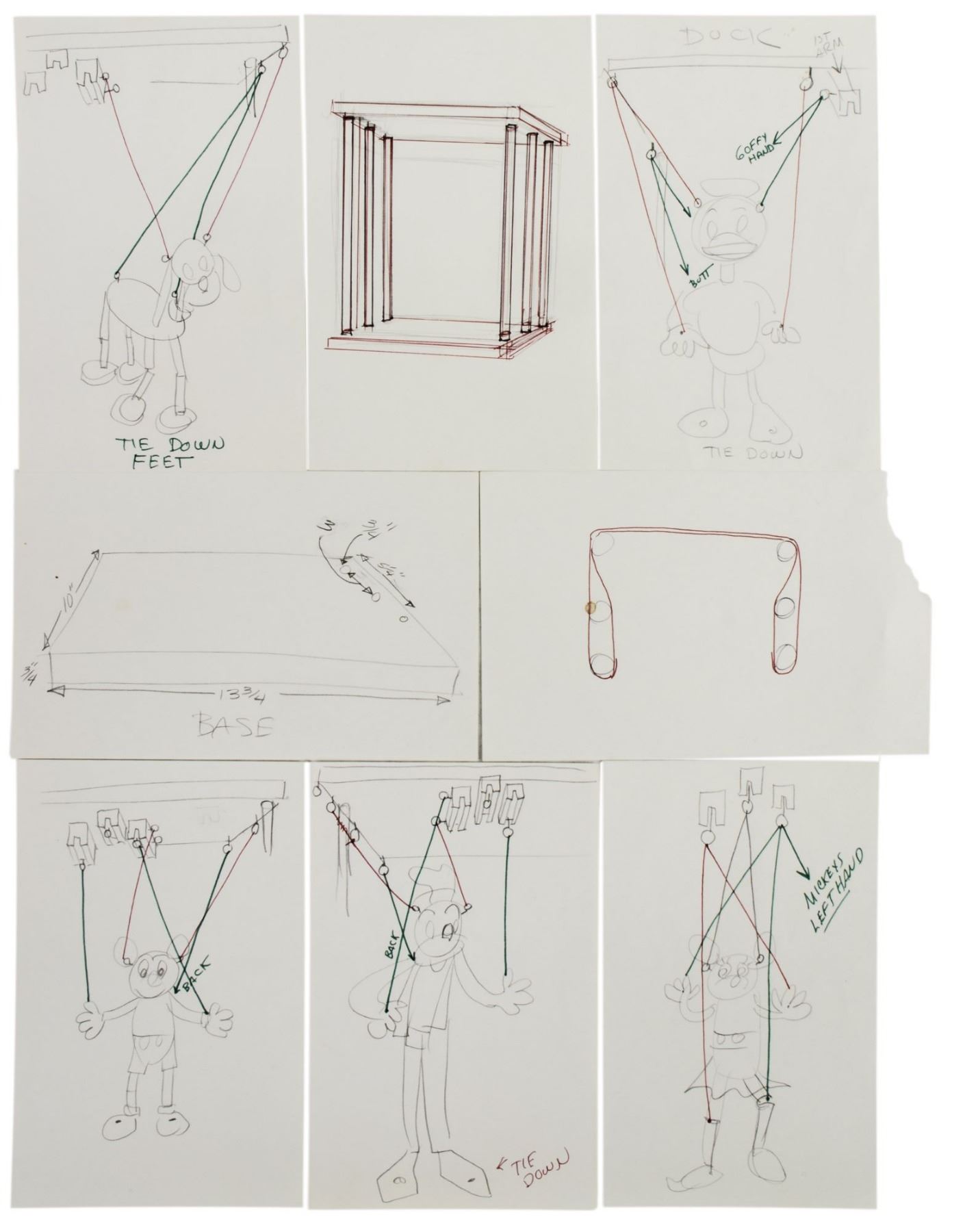 (Pelham Puppets, c.1960s) A very rare animated store display created by Pelham Puppets that depicts Mickey, Minnie, Goofy, Donald, and Pluto. This shop display would have been used to promote the sale of Pelham's Disney-themed puppets in the 1960s, and this incredible display still functions. The display turns on and the characters move when the display is plugged in. The unit measures 21"x13.75" and 10.25" deep. The display is in very good condition, with one broken string on Minnie Mouse which has been retied and still functions.