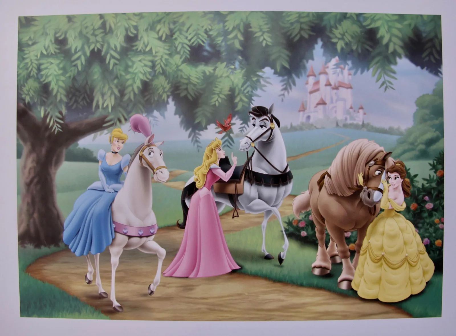 Disney Princesses Lithograph. Cinderella, Aurora and Belle. Paper measures 14 inches x 11 inches. Image measures 9 inches x 6.5inches. Comes unframed.