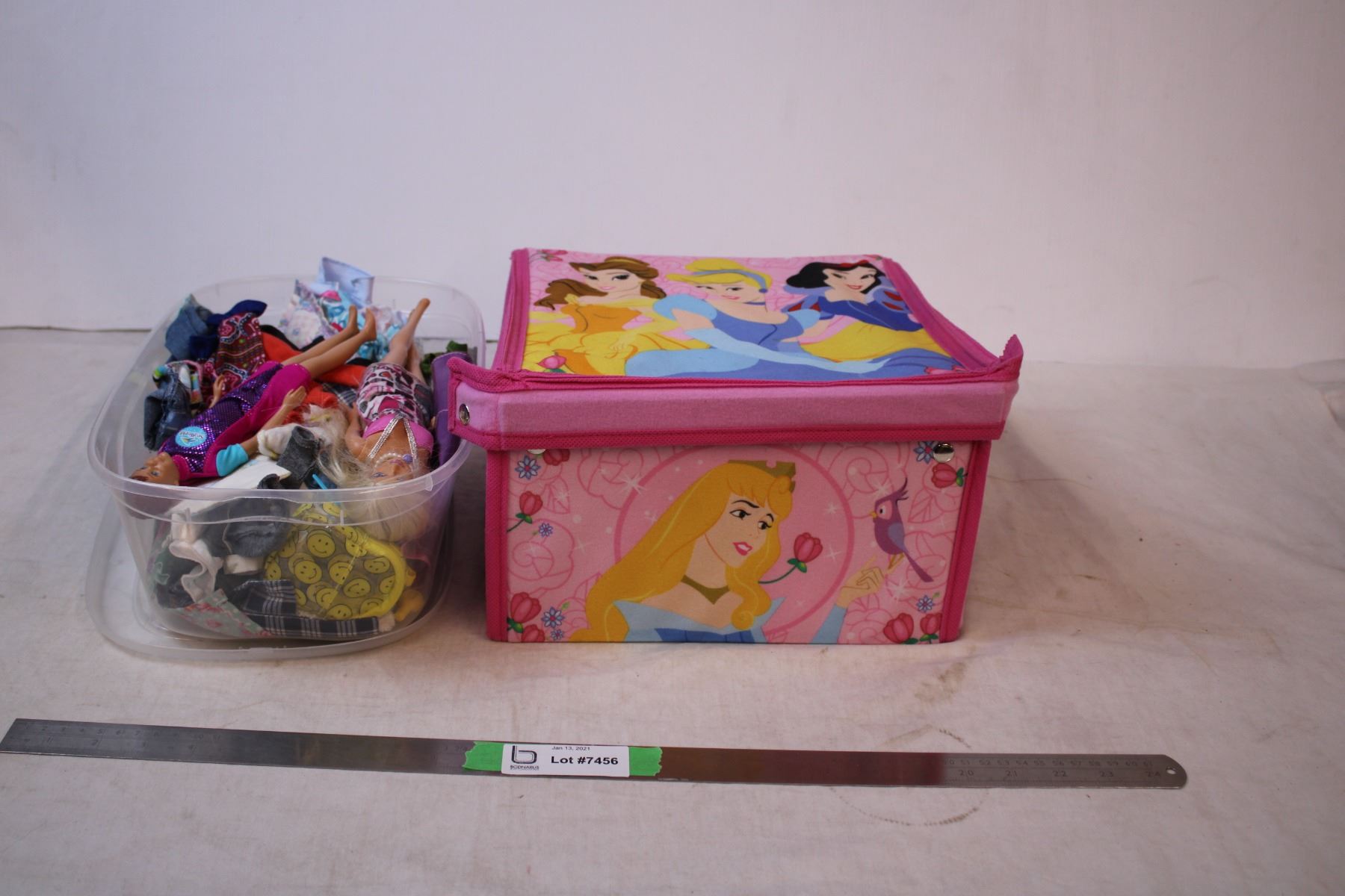 Disney Princesses Storage Box, Bin with Barbies and Barbie clothes & accessories