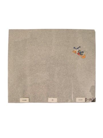 There was nothing like Disney's amazing animation educational division, now sadly gone. Here is an actual original production hand painted cell of Donald Duck from one of their series of films in the 1980's. Magnificent for framing, you can see the lost art of hand painted colors on the back of each cell, (which is protected by special tissue paper). The cell has the reinforced registration keys and has been numbered "D-143". Comes with a COA. (Original cell is 12.5"x11.5").