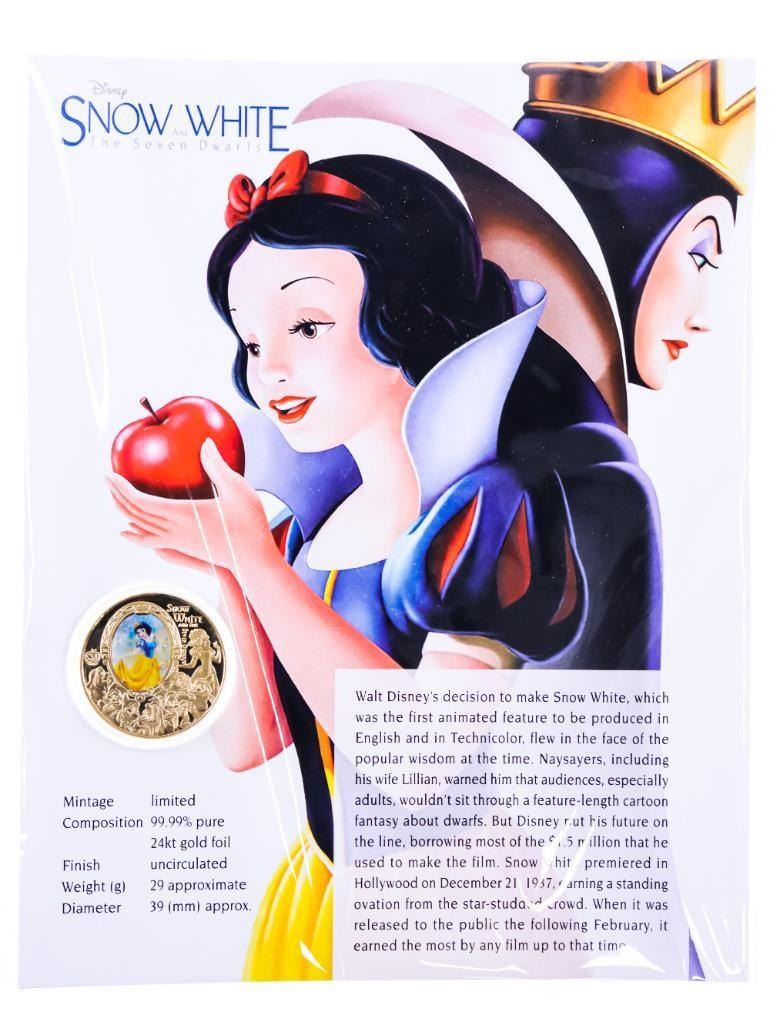 Disney SNOW WHITE 24kt Gold Foil UNC Medallion - Art Card Display